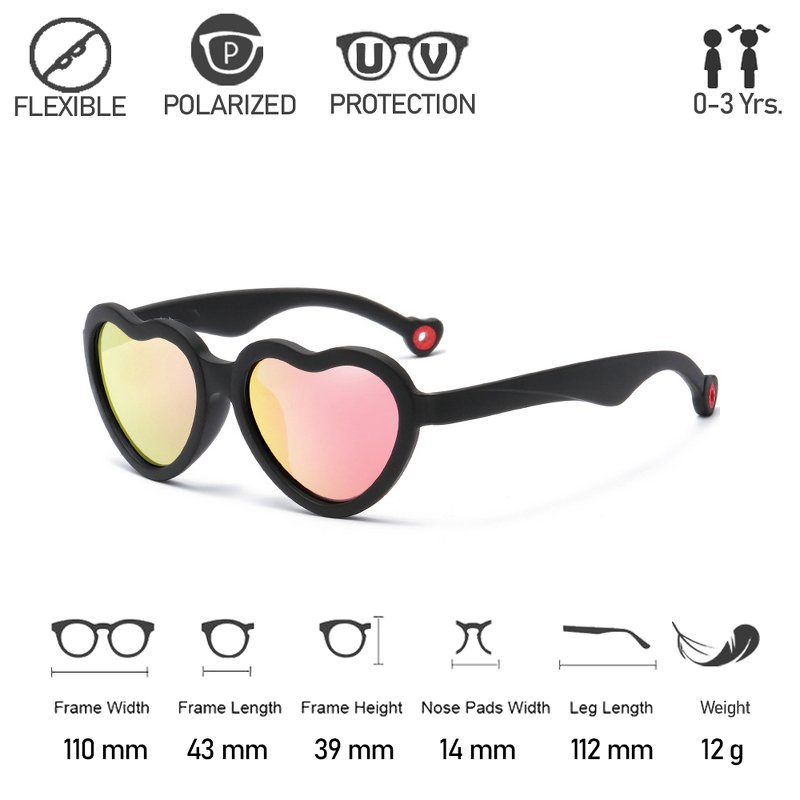 Mini heart sunglass แว่นเด็กกรอบหัวใจ เลนส์ปรอท แบรนด์ Wonderkid(SUN78)