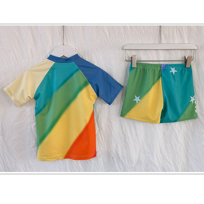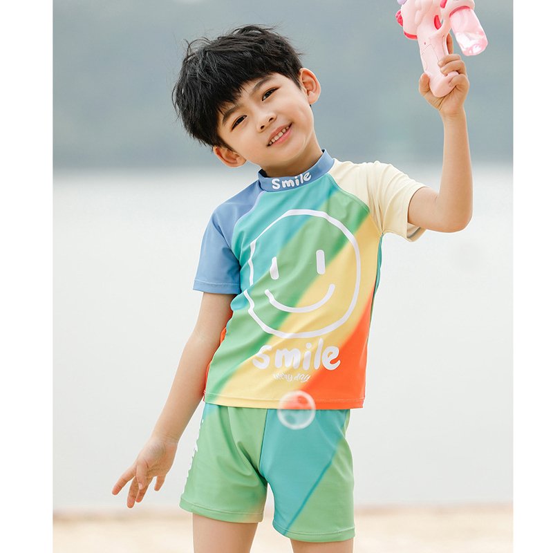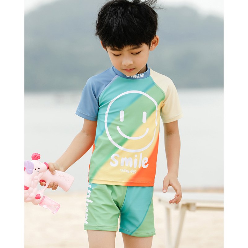 ชุดว่ายน้ำเด็ก Rainbow Smile กันยูวี 100%(3 ชิ้น เสื้อ กางเกง หมวก)(SW222)