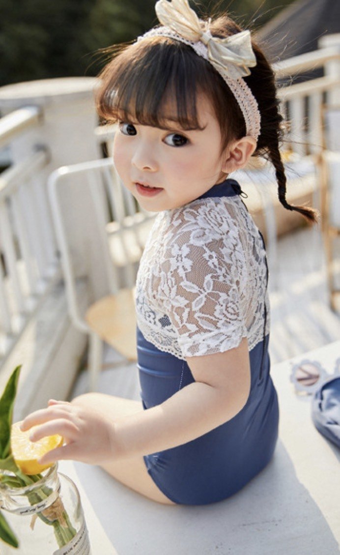 ชุดว่ายน้ำเด็ก vintage lace ลูกไม้