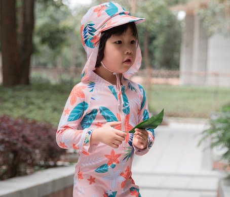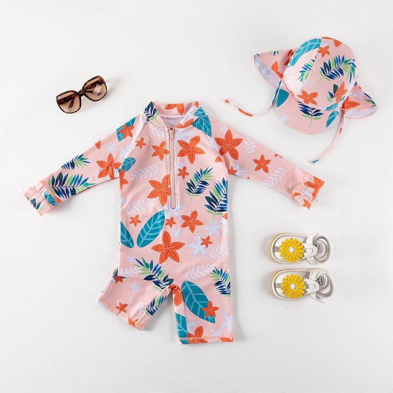 ชุดว่ายน้ำเด็ก Flora ลายดอก (2 ชิ้นชุดว่ายน้ำ + หมวก)