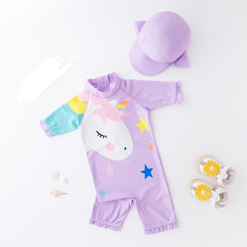 ชุดว่ายน้ำเด็ก pastel purple unicorn (มาด้วยกัน 2 ชิ้นชุดว่ายน้ำ + หมวก) ผ้าดี งานดี หวานมาก :) ใครที่ชอบยูนิคอร์นต้องมีเลยค่ะ