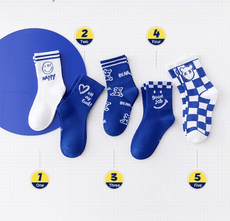 Blue Bear Sock ถุงเท้าหมีลายสตรีทเซ็ต 5 คู่พร้อมส่ง m l xl