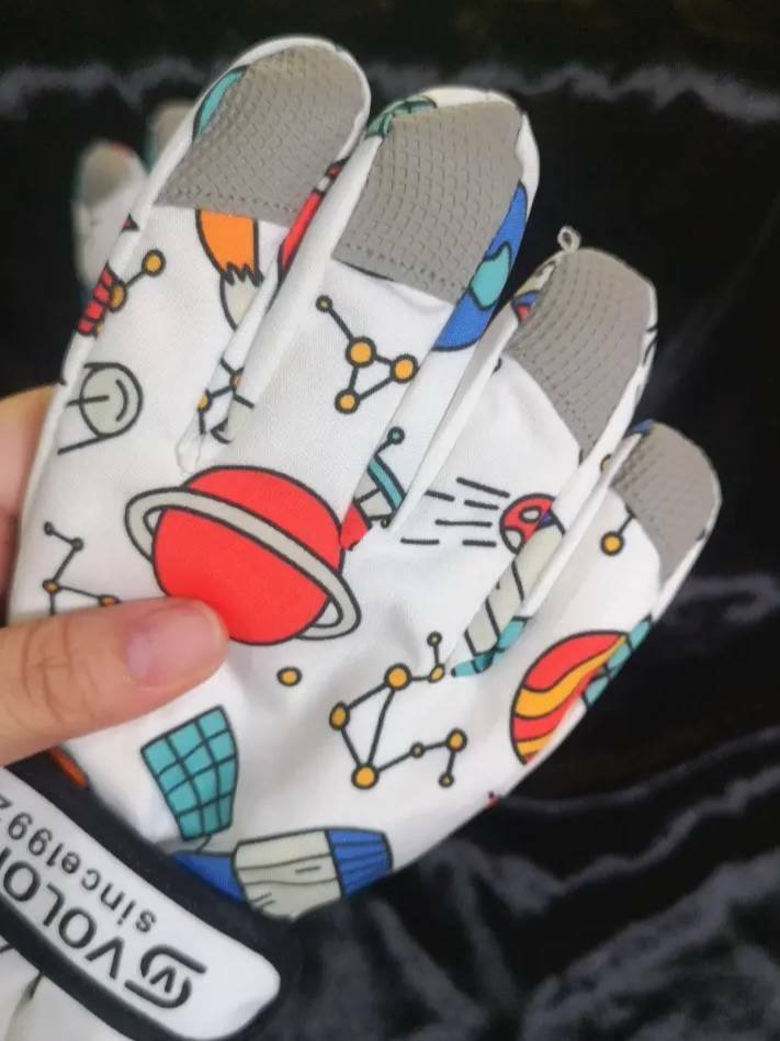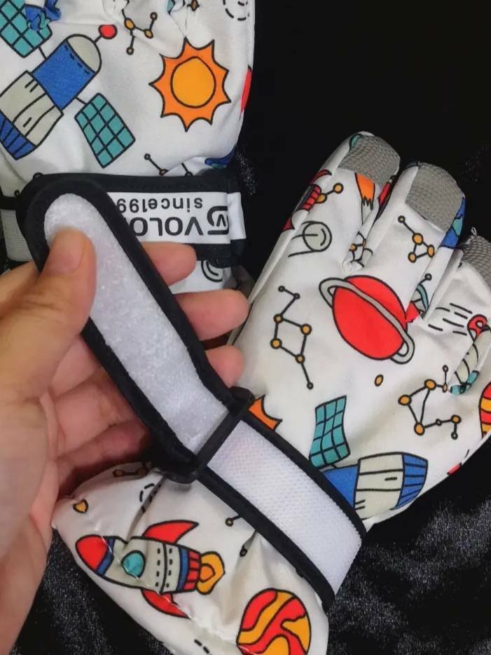 ถุงมือสกีเด็ก แบรนด์ Voloker ดีไซน์ลายอวกาศน่ารักๆ มีบุผ้าด้านในนุ่มๆ (STREET230) เก็บอุณหภูมิเพิ่มความอบอุ่นได้ดี เหมาะมากๆ เวลาไปเล่นสกี หรือ ไปเที่ยวต่างประเทศที่อากาศหนาวจัด ถุงมือนุ่ม ใส่สบาย มีแผ่นกันลื่น Anti Slip Balm ที่ฝ่ามือ มียางยืด ยืดได้ตามขนาดข้อมือ กระชับ มีสายรัดตรงข้อมือ ปรับได้ ใส่ถุงมือสามารถกดมือถือได้ค่ะ