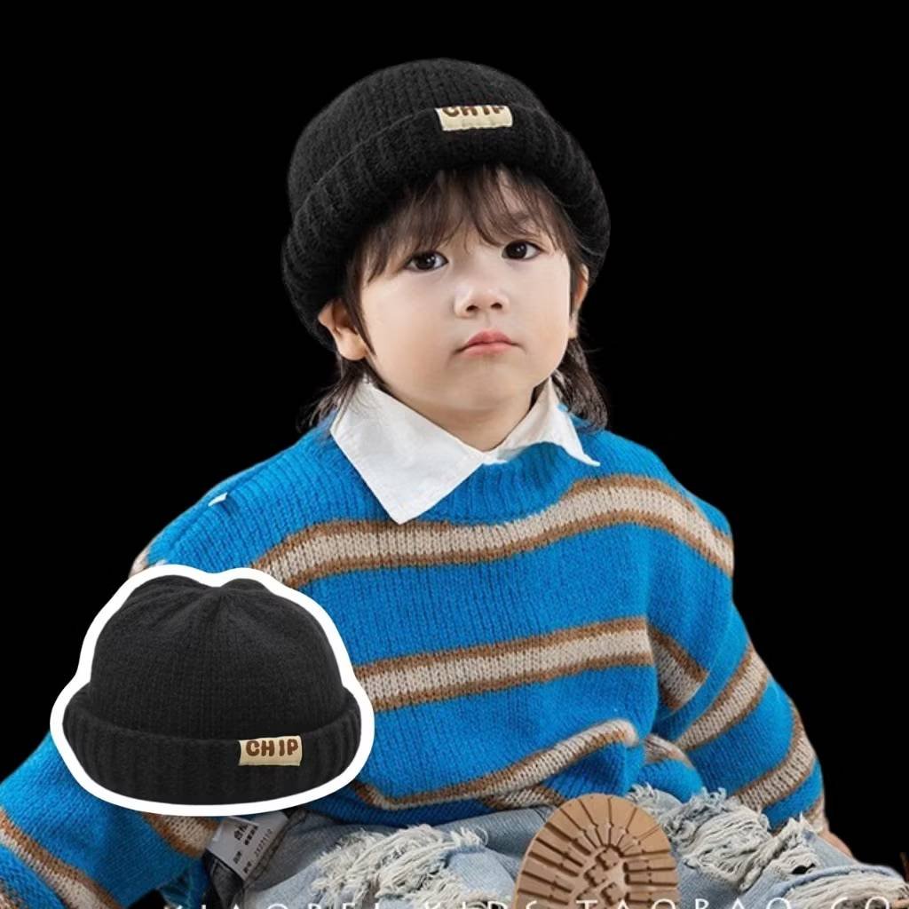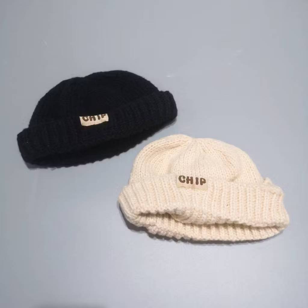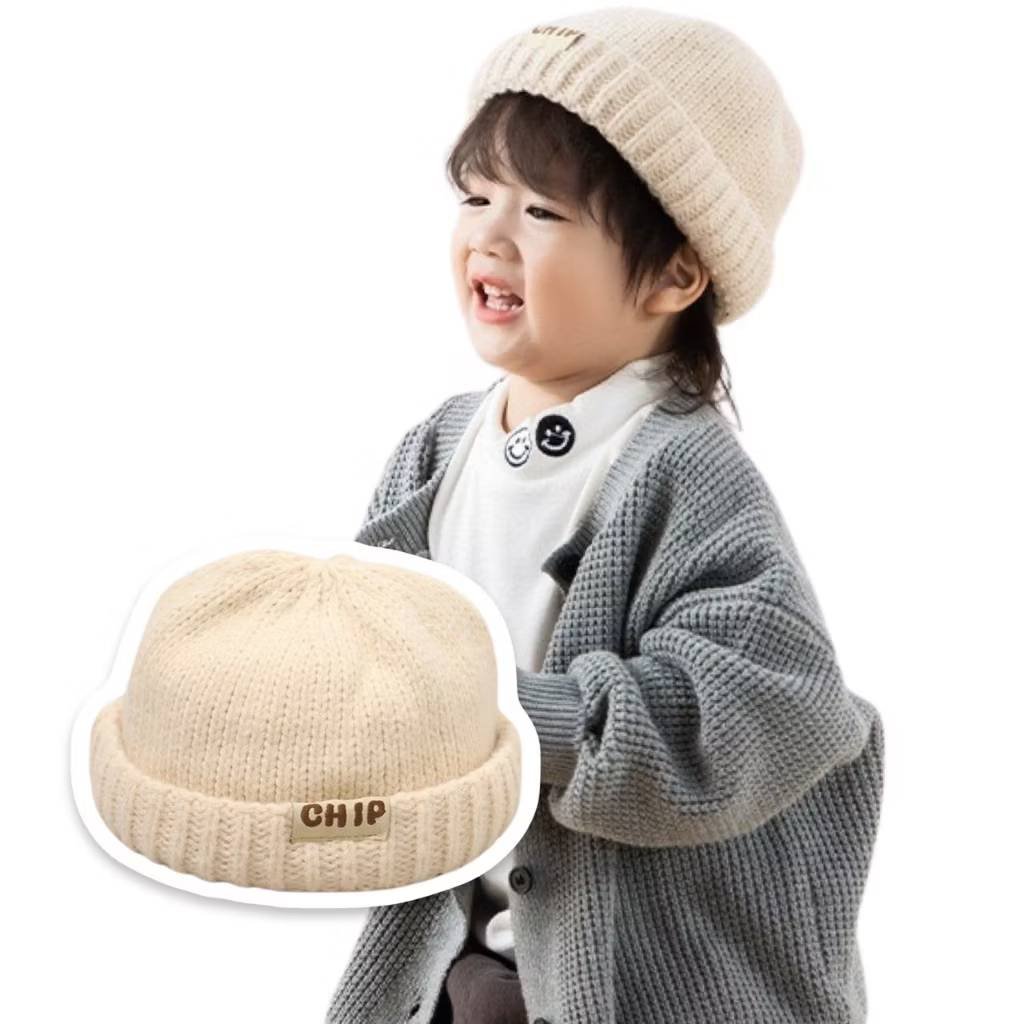 หมวกไหมพรม chip ขนาด 48-52 cm สำหรับเด็ก 1-6 ขวบมีสีครีมและสีดำ