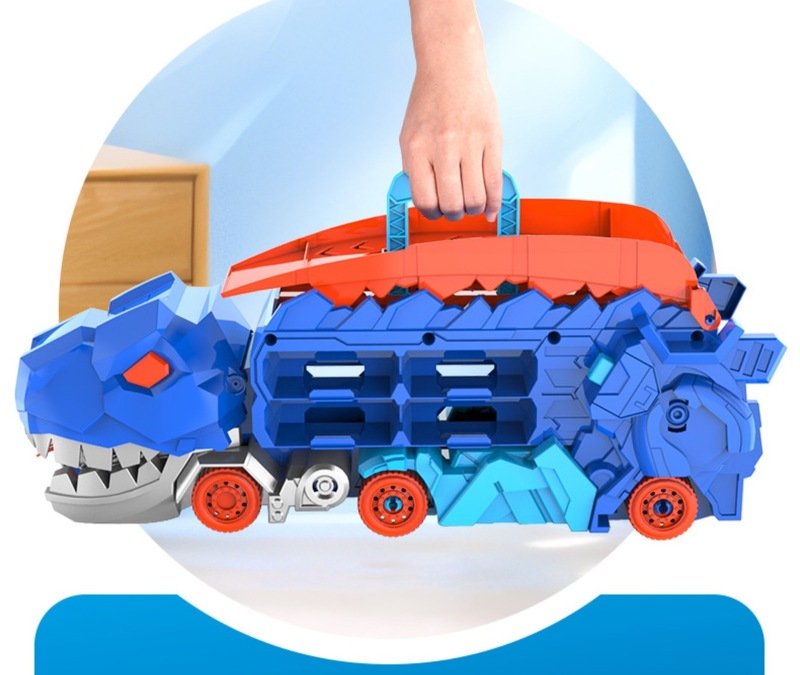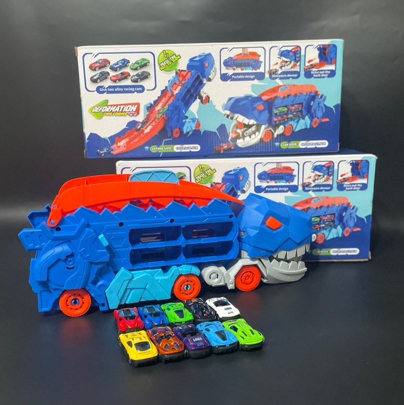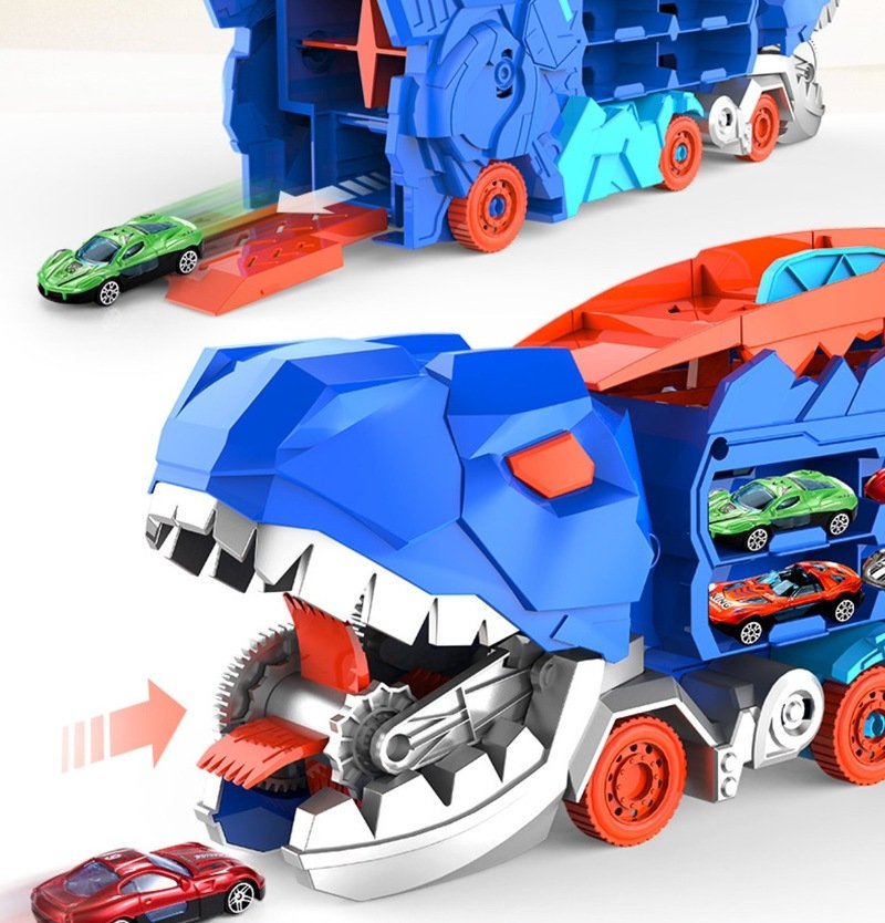 ของเล่นแนะนำของปีเลยค่ะ พอแกะออกมาจะมาเป็นหูหิ้วเป็นเหมือนที่สะสมเก็บรถได้มากที่สุดถึง 18 คัน แต่! พอกางฝาข้างบนออกก็จะกลายเป็นหางยาว และพอยกตัวขึ้นก็จะกลายเป็นทีเร็กซ์ตัวใหญ่ กลางหลังก็จะใช้เป็นรางรถ สามารถใส่รถรอด้านบนแล้วกดปุ่มปล่อยรถแข่งกันได้เลย!! แล้วตรงปากสามารถอ้าเขมือบรถได้ด้วย!!! ถ้าลูกได้ต้องถูกใจแน่นอน