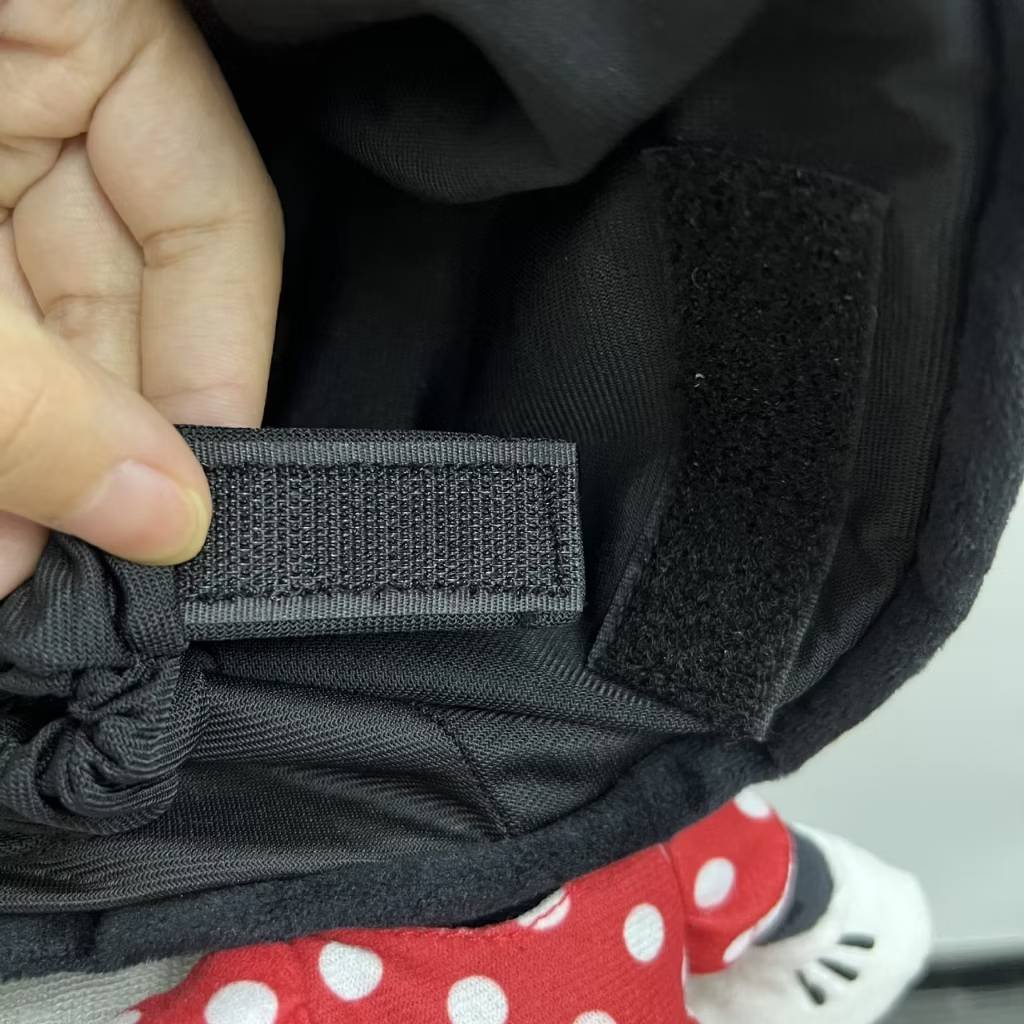มีตุ๊กตาห้อยด้านหลัง รอบหัวปรับได้มีแถบตีนตุ๊กแก แถบสายรูดกระชับได้