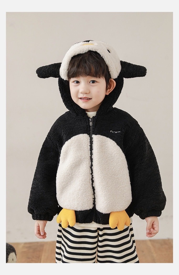 เสื้อหนาวเด็ก เสื้อกันหนาวเพนกวิน penquin kid ขนปุยน่ารักมาก ดีไซน์มีฮู้ดเป็นเพนกวินมีปีก เป็นซิป ผ้าซับในอย่างดีใส่สบาย นุ่ม