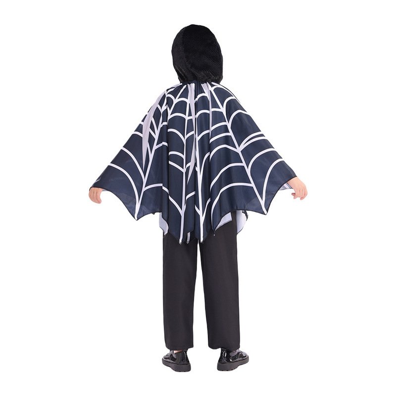 รับฮาโลวีน งานกิจกรรมโรงเรียนตามธีม เป็นชุดผ้าคลุมลายใยแมงมุม มีฮู้ดเป็นหัวแมงมุมขนปุยๆ ใส่คลุมง่ายปุ๊บ แปลงร่างปั๊บ!
