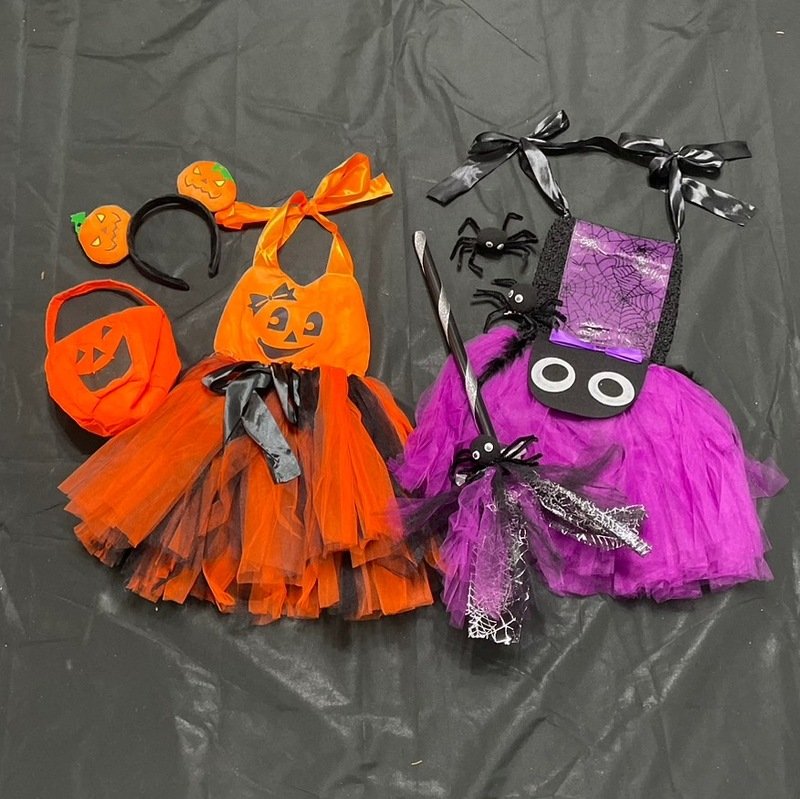 • ชุดแมงมุม มีเดรส 1 ตัว พร้อมกิ๊ฟหนีบแมงมุม 2 ชิ้น และไม้กวาดแม่มดค่ะ