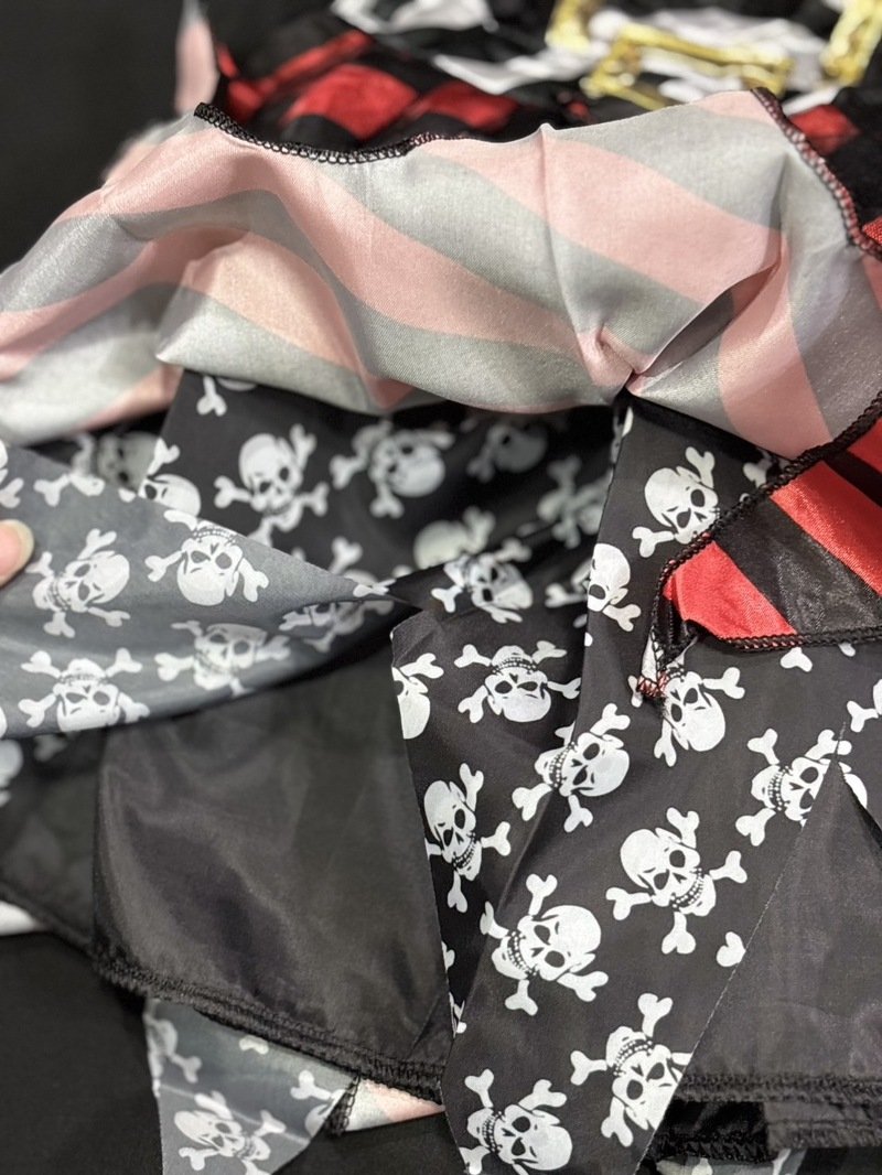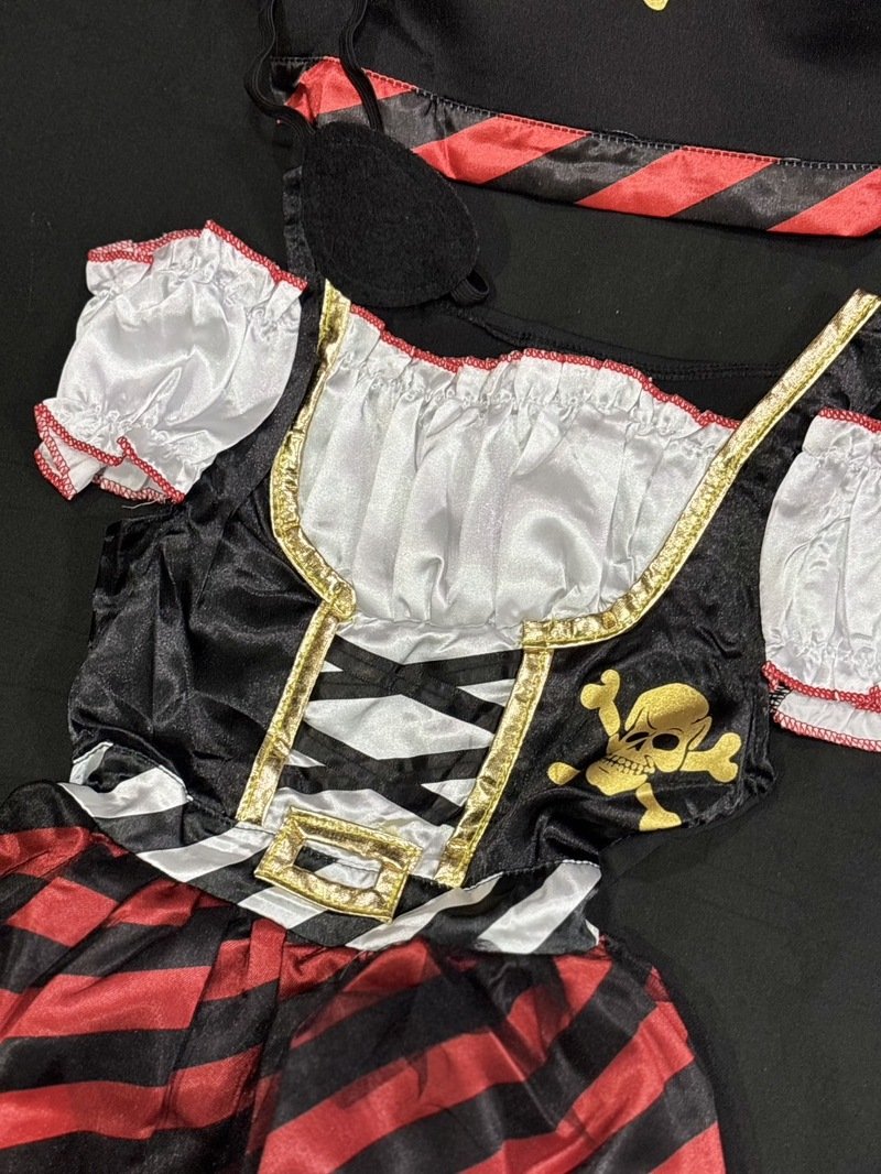 ชุดโจรสลัดเด็กผู้หญิง มาเป็นเดรสระบาย และสายคาดรูปหมวกโจรสลัด และที่ปิดตายางยืด งานดี น่ารักมาก