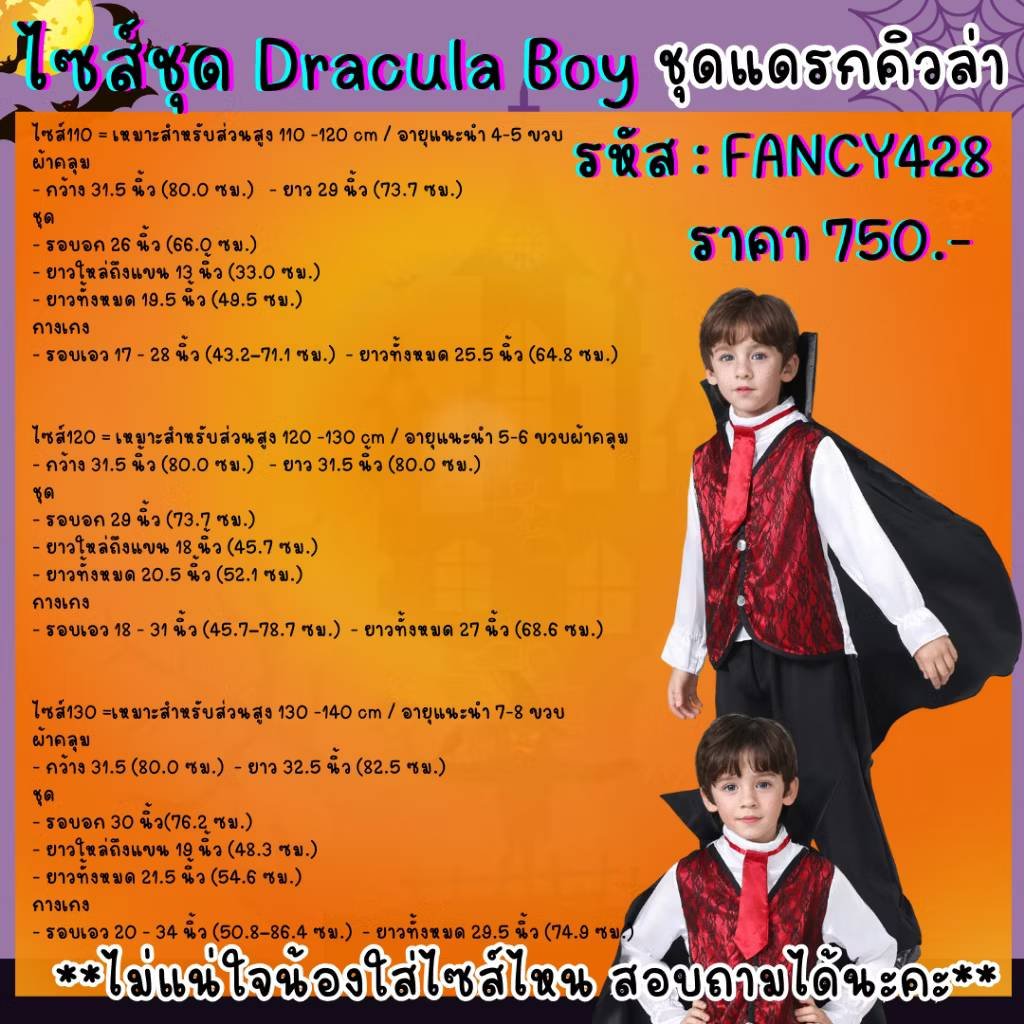ชุดแฟนซีเด็ก แดรกคิวล่า Dracula Boy เจ้าชายแวมไพร์ Vampire prince (เสื้อขาว + เสื้อกั๊กเย็บติด + กางเกง+ผ้าคลุม) (FANCY428)