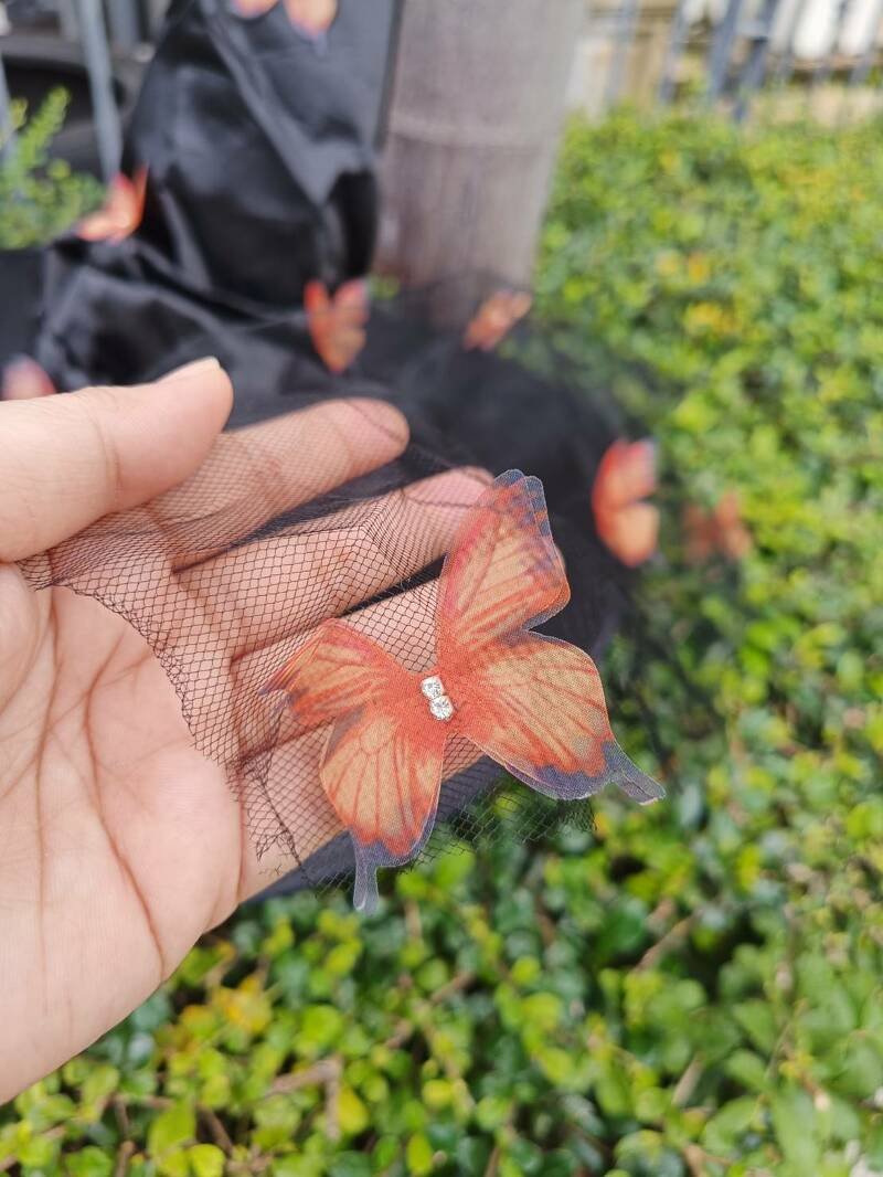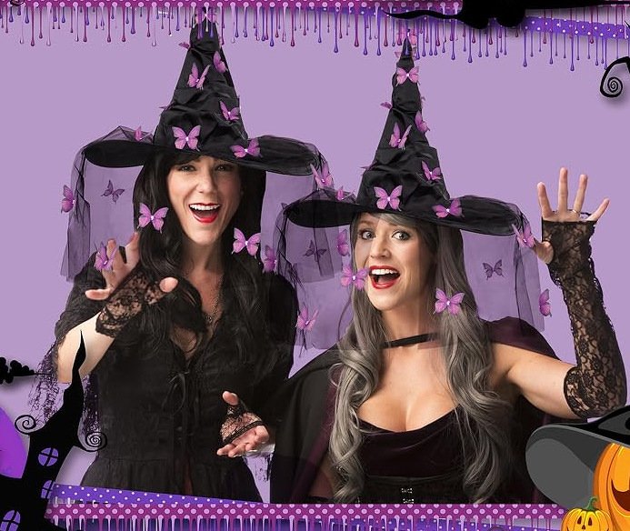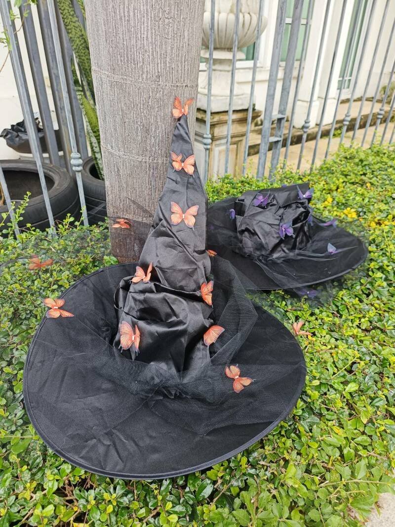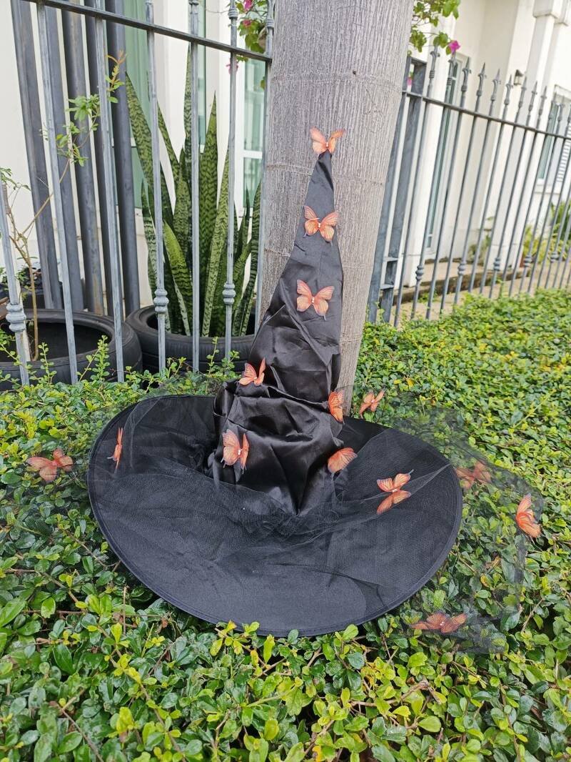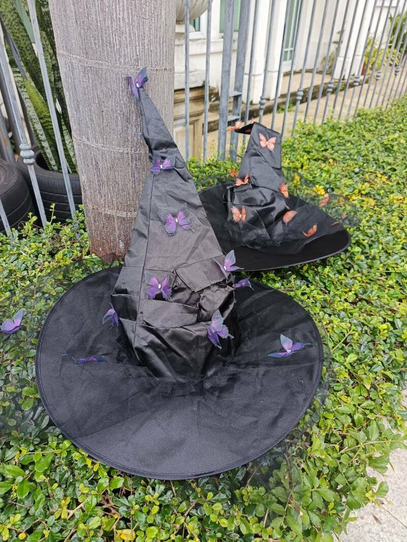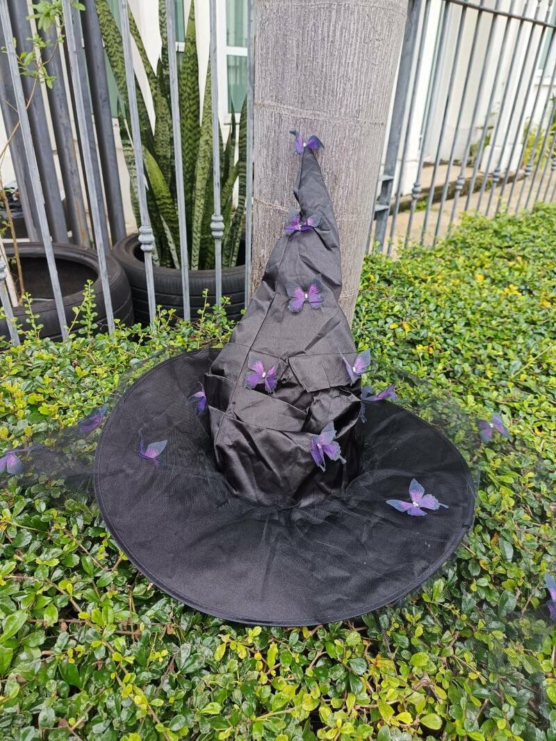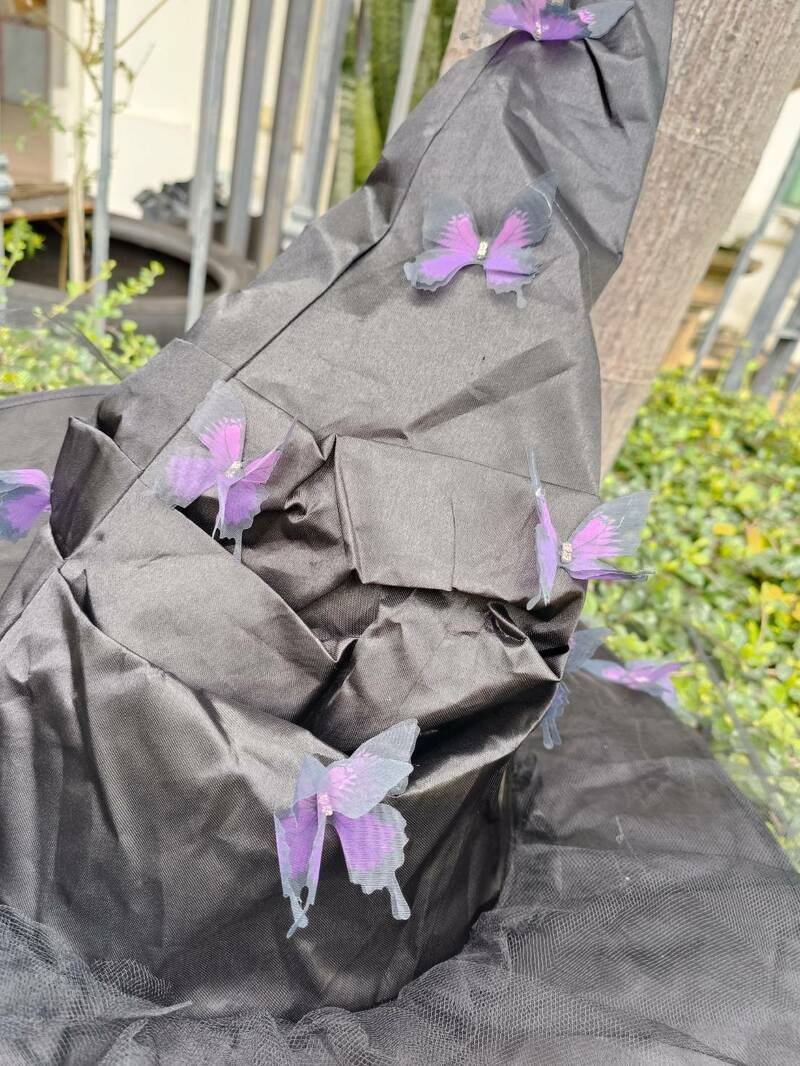หมวกแม่มดดีไซน์เก๋ ผลิตจากผ้าเบา ใส่สบายไม่อึดอัด ตกแต่งด้วยผีเสื้อสีสันสดใส เพิ่มความโดดเด่น ไม่ซ้ำใครแน่นอน รอบหมวกมีผ้าตาข่ายห้อยลงมา เก๋มากเหมาะสำหรับใส่ในงานฮาโลวีน ปาร์ตี้แฟนซี หรือแม้แต่แต่งเล่นถ่ายรูปเก๋ๆ