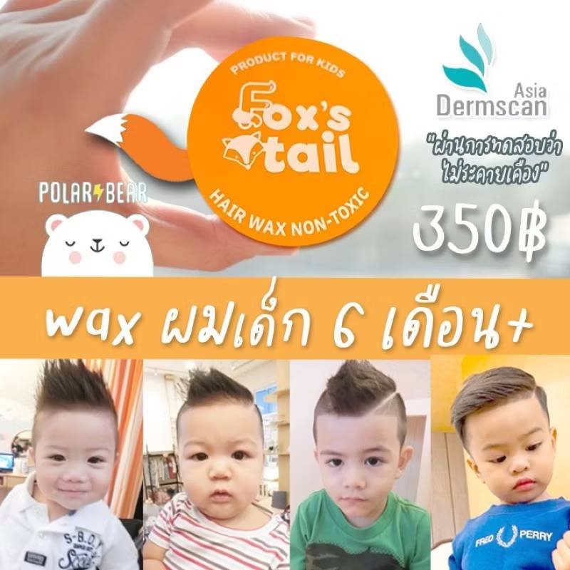 • Fox’s tail : Baby hair wax แว๊กจัดทรงผมสำหรับเด็กโดยเฉพาะ (6เดือน++) การันตีความเท่จากร้านตัดผมเด็กสุดฮิป little red fox ~ สามารถเซตทรงผมได้ 2 สไตล์ ได้ทั้งแบบผมตั้ง และผมปัดข้าง(วินเทจสไตล์) ผสมน้ำเล็กน้อยให้ได้wetlook