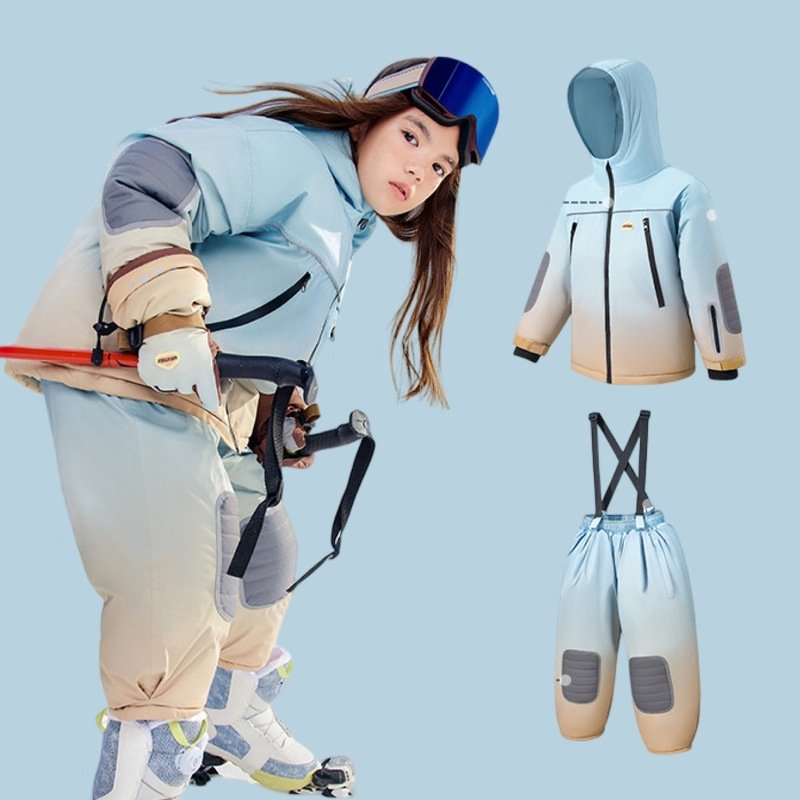 ด้านนอกเป็นผ้า 5 เลเยอร์ teflon เคลือบ TPU กันน้ำอย่างดี สามารถกันฝุ่น เชื้อโรค กันน้ำ กันน้ำมัน กันลมได้เป็นอย่างดี ใส่เล่นสกี เล่นหิมะ เล่นสโนว์บอร์ดได้เลย (ใส่ทับลองจองยิ่งอุ่นขึ้น) รุ่นนี้มาแบบ 2 ชิ้นมาพร้อมฮู้ด ปิดคอกันลม มีซิปและกระดุม ส่วนตัวกางเกงมีสายเอี๊ยมแบบชุดสกีปรับได้ ผ้าให้ความอบอุ่นจากภายใน กันน้ำจากภายนอก กันลมได้อย่างดีให้ลูกๆ ไปสัมผัสหิมะแบบสนุกและเล่นได้นานแน่นอน สามารถใส่ในอุณหภูมิติดลบได้ถึง -5 ถึง-20องศาเลยค่ะ ดีไซน์ผ้าทอแบบทแยงให้ยืดหยุ่น ทนทาน อายุการใช้งานนานค่ะ
