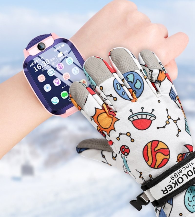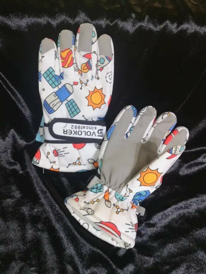 ถุงมือสกีเด็ก แบรนด์ Voloker ดีไซน์ลายอวกาศน่ารักๆ มีบุผ้าด้านในนุ่มๆ (STREET230) เก็บอุณหภูมิเพิ่มความอบอุ่นได้ดี เหมาะมากๆ เวลาไปเล่นสกี หรือ ไปเที่ยวต่างประเทศที่อากาศหนาวจัด ถุงมือนุ่ม ใส่สบาย มีแผ่นกันลื่น Anti Slip Balm ที่ฝ่ามือ มียางยืด ยืดได้ตามขนาดข้อมือ กระชับ มีสายรัดตรงข้อมือ ปรับได้ ใส่ถุงมือสามารถกดมือถือได้ค่ะ