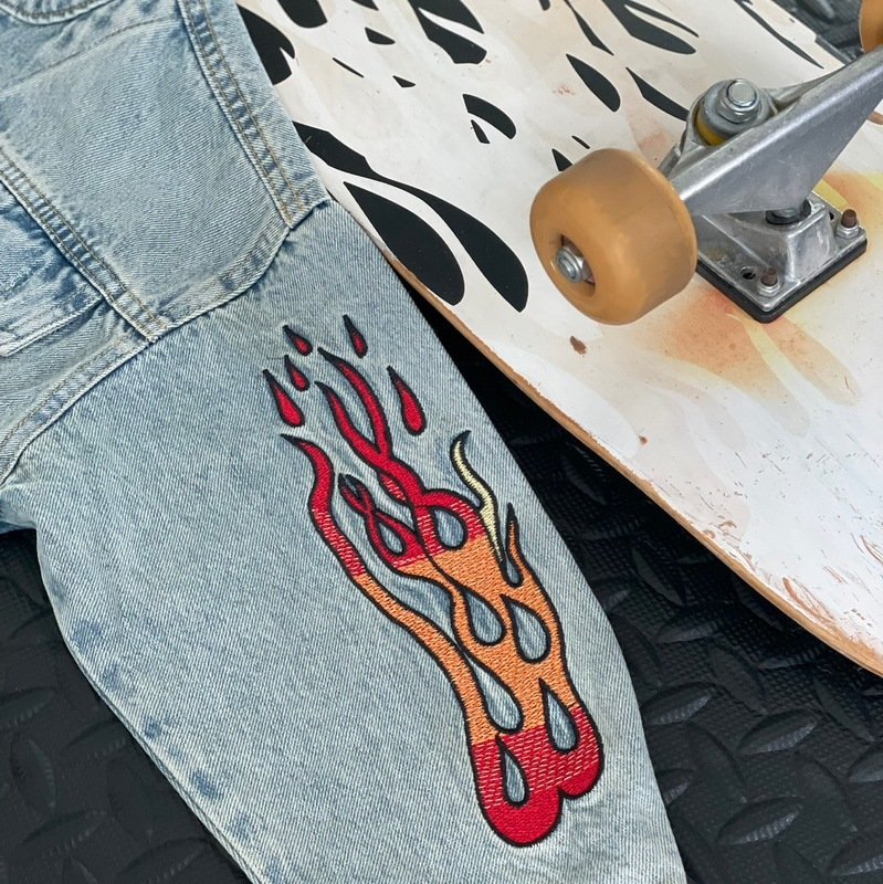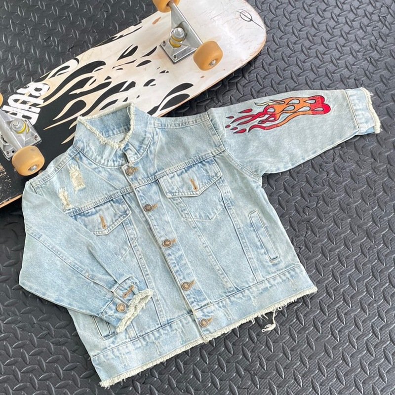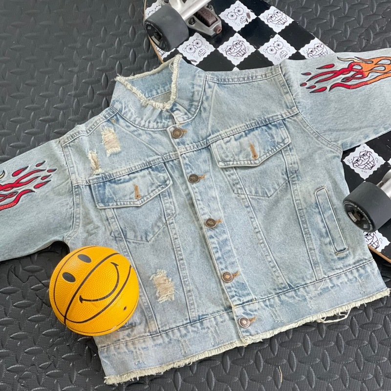แจ็คเก็ตยีนส์เด็ก สกรีนลายไฟ แบบพี่แจ็ค