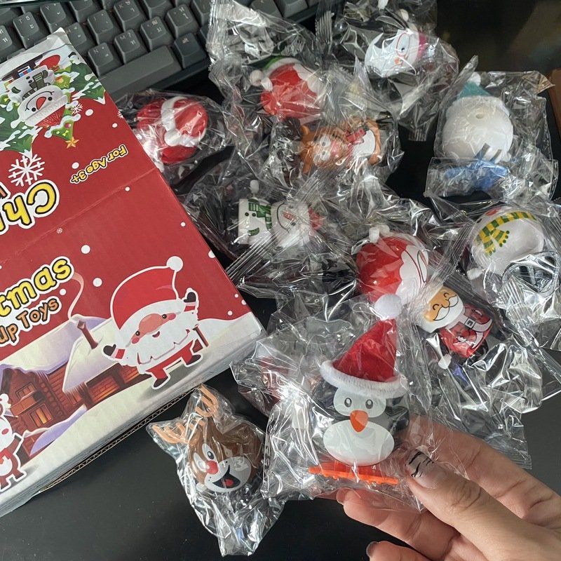 เซ็ตของแจกเด็กๆ วัน xmas ในกล่องจะมีตุ๊กตาไขลาน ซานต้า สโนว์แมน เรนเดียร์ และการ์ตูนน่ารักๆ แบบไขลานและเดินได้ ทั้งหมด 12 ตัวค่ะ ด้านในมีพลาสติกหุ้มแยกเป็นชิ้นไว้ค่ะถ้าจะแยกแปะสติ๊กเกอร์เป็นของขวัญแจกเด็กๆ รับเทศกาลก็ง่ายเลยค่ะ