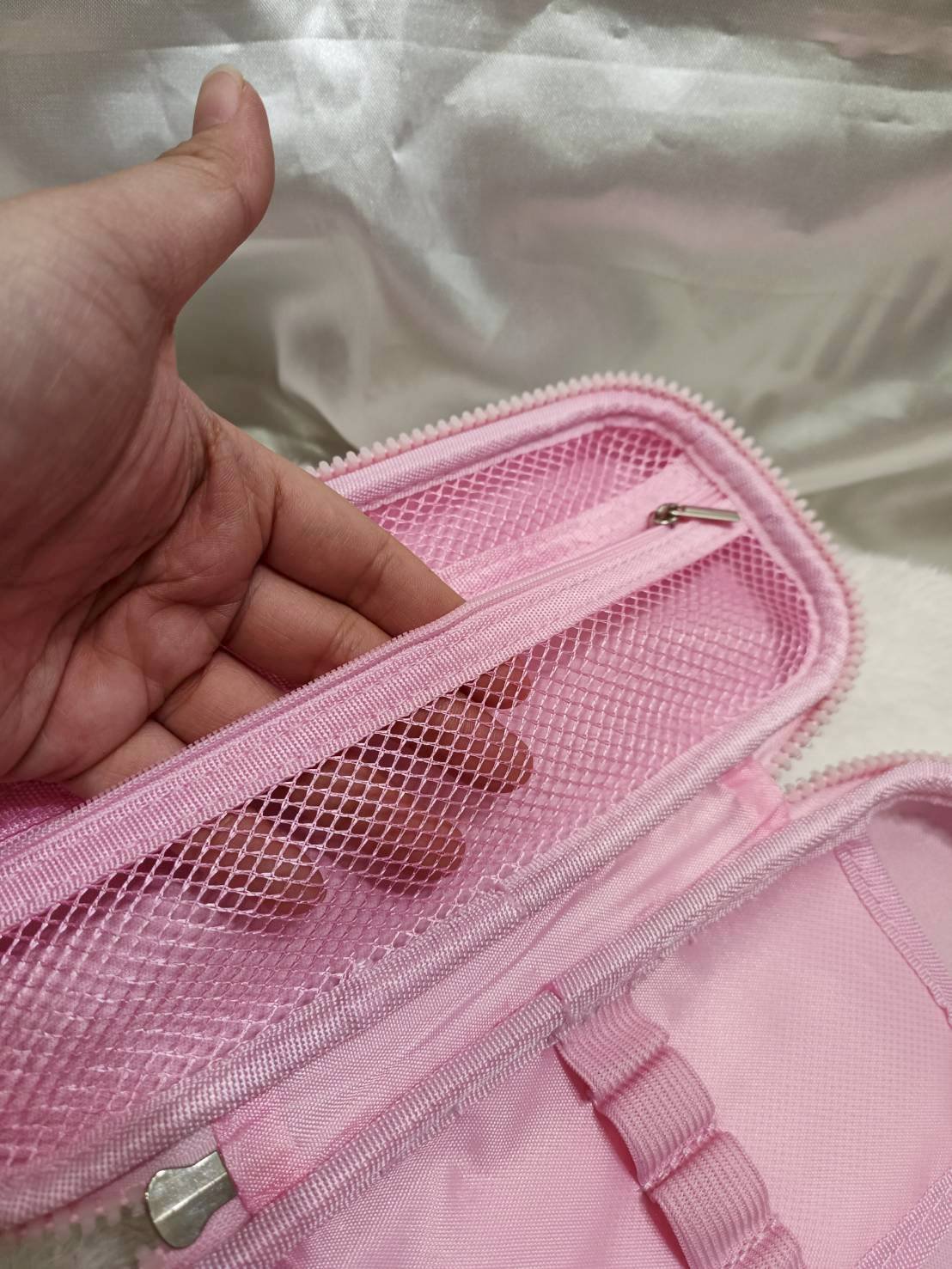 ขนาด 10.5 cm x 22 cm เปิดด้านในมีช่องซิปตาข่ายแยกใส่ของ และมีแถบกลางพร้อมช่องเสียบสำหรับใส่เครื่องเขียน และอีกฝั่งก็ใส่เครื่องเขียน เรียกว่าจุมากๆ และช่วยจัดแบ่งโซนเครื่องเขียนได้ดี หาง่ายมากๆ ค่ะ