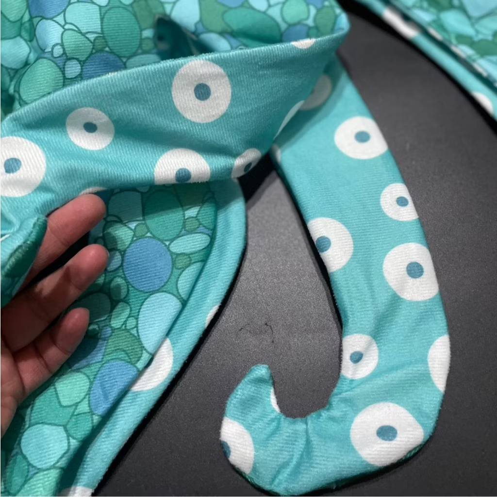 มาเป็นชุดตัวยาว แต่งปลายเป็นหนวดปลาหมึก รวมถึงที่แขนก็จะยาวมีปลายยางยืดรัดนิ้วให้เหมือนหนวดปลาหมึก มีตีนตุ๊กแกด้านหลัง และเครื่องหัวเป็นหมวกสวมน่ารักมากๆ นายแบบสูง 115 cm น้ำหนัก 18.5 ใส่ s