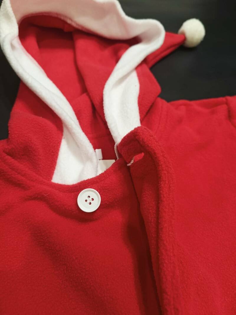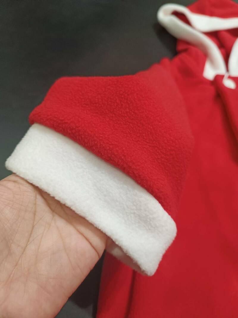 ดีไซน์เป็นเสื้อโค้ทแขนยาวธีมคริสต์มาส สีแดงสดใสดีเทลด้านหน้าแต่งกระดุมสีขาว เพิ่มลูกเล่นตรงฮู้ดแต่งปอมกลมๆ น่ารักมาก!