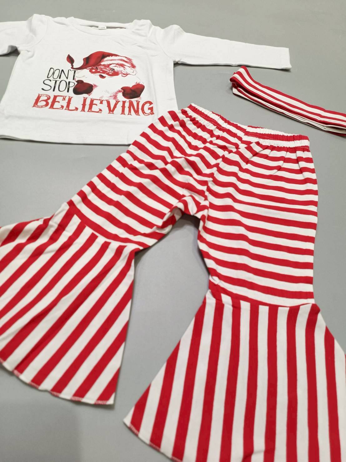 Retro santa set ชุดเซ็ตเสื้อซานต้าแขนยาว ผ้านิ่ม cotton(FANCY214) ใส่สบาย กับ กางเกงเอวยืดทรงขาบาน น่ารักๆ