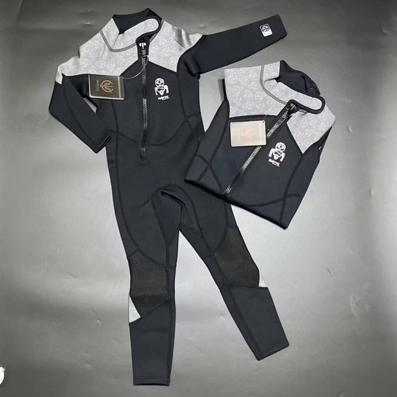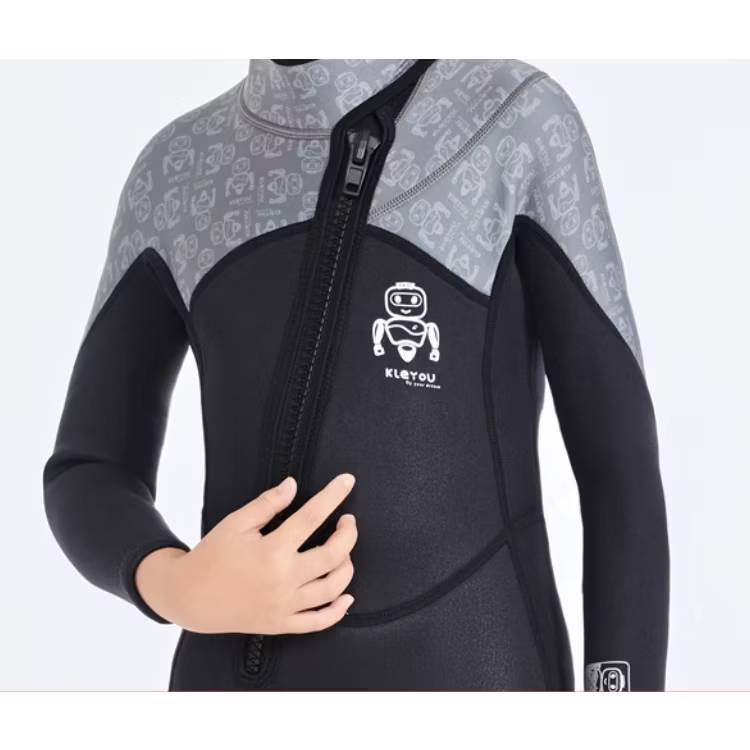 มาโทนดำ เรียบ เท่ ผ้าหนาเก็บความอบอุ่นได้เป็นบอดี้สูทตัวยาวแขนยาว ปกป้องผิวจากรอยขูดขีดหรือสัตว์ใต้ทะเล รุ่นนี้เป็นซิปหน้าให้ลูกสามารถถอดชุดได้เอง