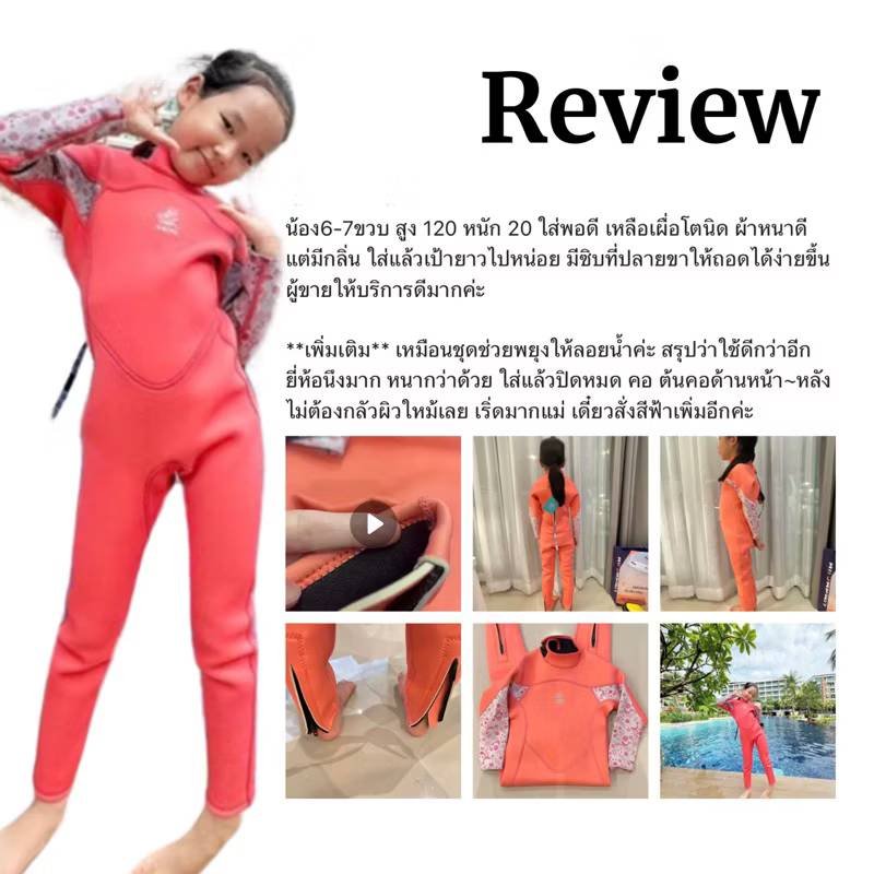 ให้ลูกสนุกสุดเหวี่ยงแบบไม่หนา เนื้อผ้าหนา 2 มม เล่นในสระนานๆ ไม่หนาว ถ้าเล่นทะเลก็ช่วยปกป้องผิวหนังไม่ให้สัมผัสกับพิษของแมงกระพรุน หรือสิ่งที่จะทำให้ผิวหนังเกิดอาการแพ้หรือระคายเคือง ปกป้องผิวจากแสงแดด กันUV UPF50+ ช่วยรักษาอุณหภูมิร่างกายให้อบอุ่น ป้องกันการไม่สบายจากร่างกายปรับตัวไม่ทันเมื่อเปลี่ยนอุณหภูมิเร็ว มีซิปด้านหลัง สายเชือกยาวน้องรูดเองได้