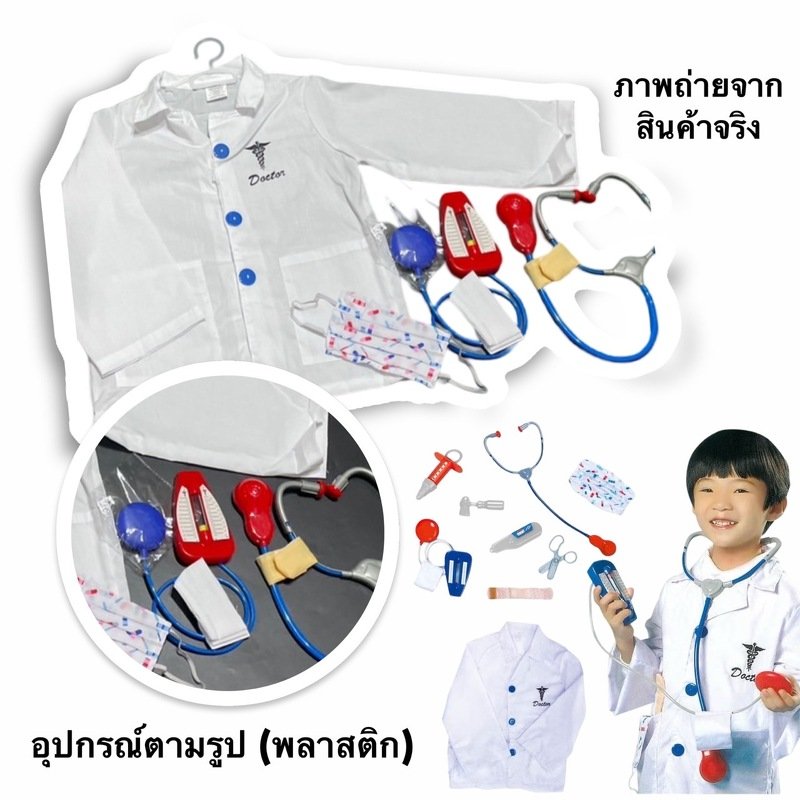 มีชุดหมอ (มีเสื้อ หูฟัง อุปกรณ์ฉีดยา เทอร์โมมิเตอร์ หน้ากากผ้า)