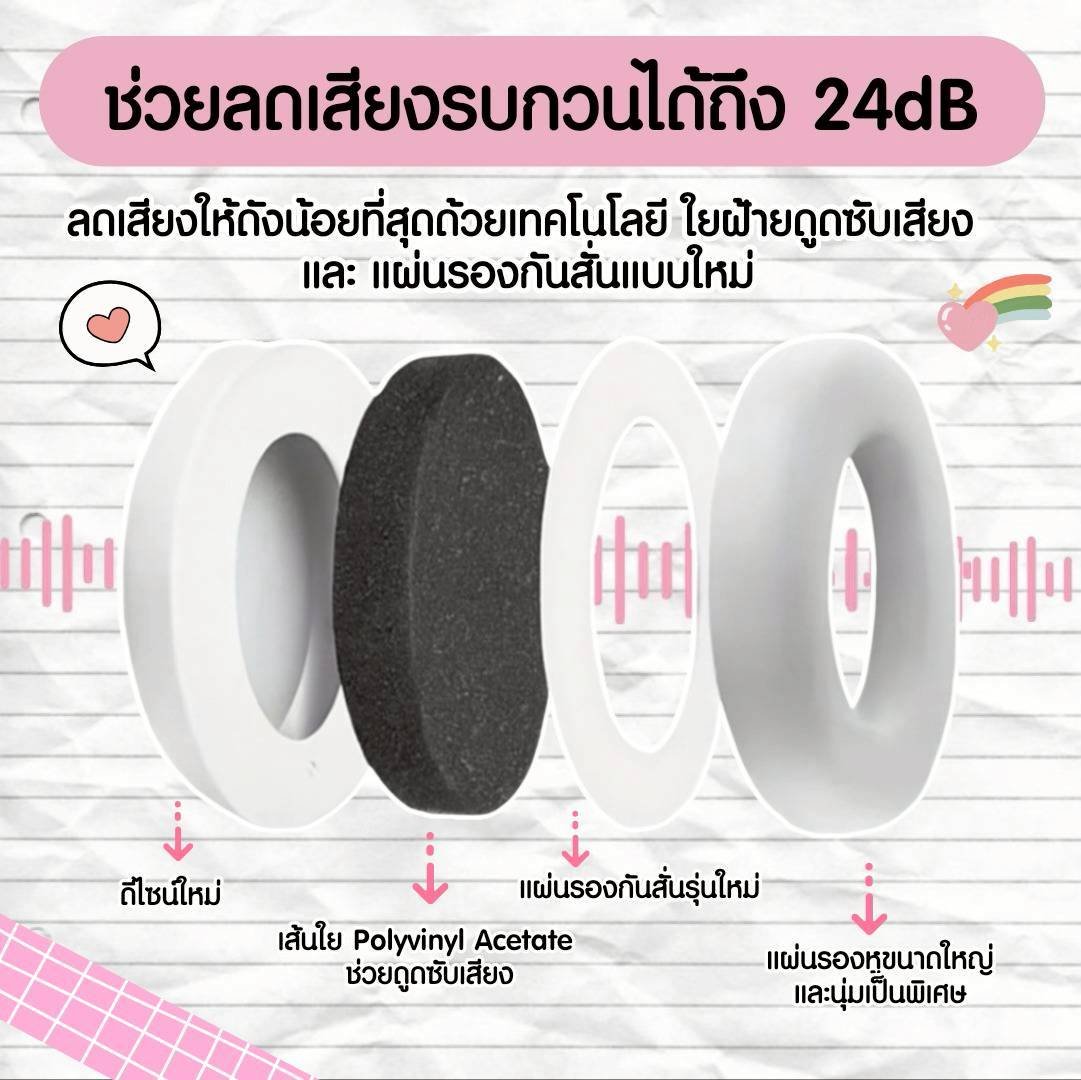 ที่ครอบหูสำหรับเด็ก 1 เดือนขึ้นไปถึง 36 เดือน มีที่ปรับเลื่อนแบบเทป ลดเสียงรบกวน อยู่ที่ 25dB สามารถช่วยปกป้องเด็กทารกจากการได้ยินเสียงดังหรือเสียงรบกวน เช่นตอนขึ้นเครื่องบิน ที่ที่มีเปิดเพลงเสียงดัง งานกีฬา ช่วยให้เด็กๆ รู้สึกไม่ตื่นกลัว สงบขึ้น แนะนำให้พกไปในการเดินทางเลยค่ะ รุ่นนี้เป็นรุ่นที่ได้รับความนิยมมากๆ เพราะเป็นแบบแถบคาดศีรษะสายคาดแบบยืดหยุ่นและนุ่ม ไม่กดศีรษะเด็ก BPA FREE น้ำหนักเบาเพียง 100 กรัมเบากว่าแบบหูฟังแบบพลาสติก มาพร้อมถุงผ้าสำหรับเก็บหูฟัง
