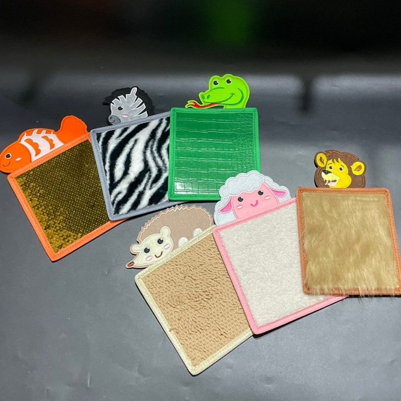 มีทั้งหมด 6 แผ่น ผืนผิวต่างกัน เด็กๆ จะได้เรียนรู้จากการเล่น การสัมผัสว่าแต่ละแผ่น texture ต่างกันอย่างไร พัฒนากล้ามเนื้อมัดเล็ก และความคิดสร้างสรรค์ดีมากๆ