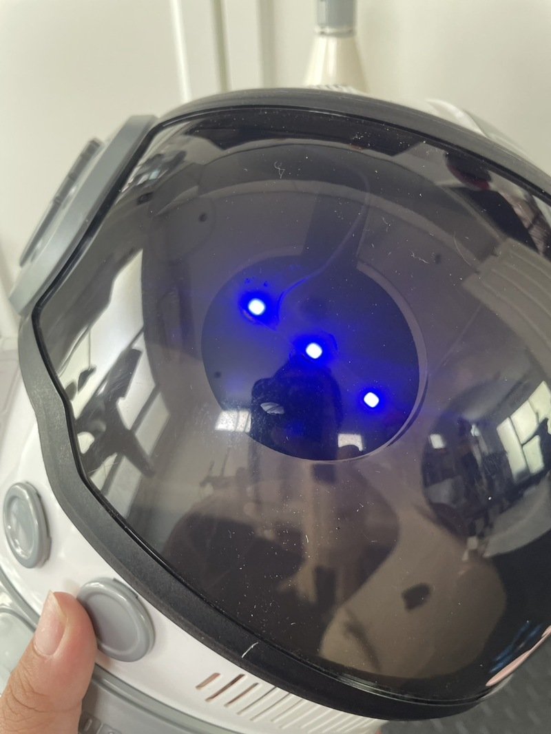 ใส่ถ่านกระดุมด้านในเปิดสวิตช์แล้วจะมีไฟสีฟ้าเหมือนตาด้านหน้าใส่ออกมาแล้วเท่ ดูไฮเทคมากๆเลยนะคะ แฟนซีมากๆ