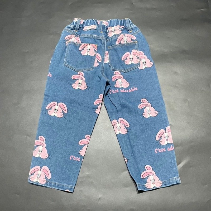 Bunny Jean ยีนส์พิมพ์ลายกระต่าย น่ารักมากๆ มีแบบกางเกงและแบบเอี๊ยมกระโปรง ไซส์ 100/120/140 cm