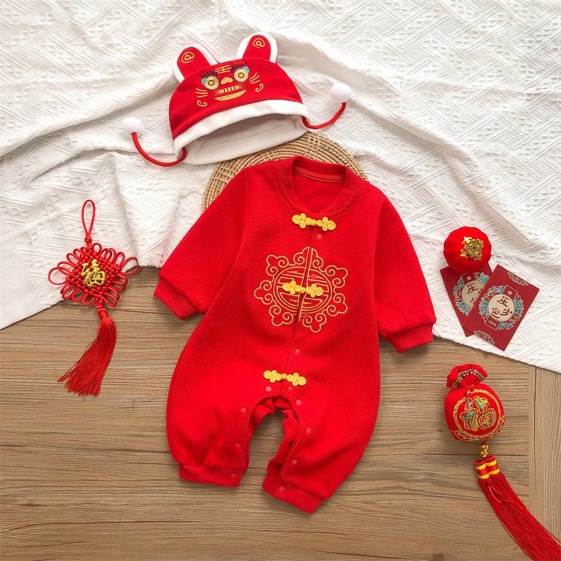 บอดี้สูทตรุษจีน chinese newyear bodysuit ผ้าไม่หนา ไม่บวม ใส่สบายๆ มีชุด+หมวกน่ารักๆ พร้อมส่งไซส์ 80/90cm