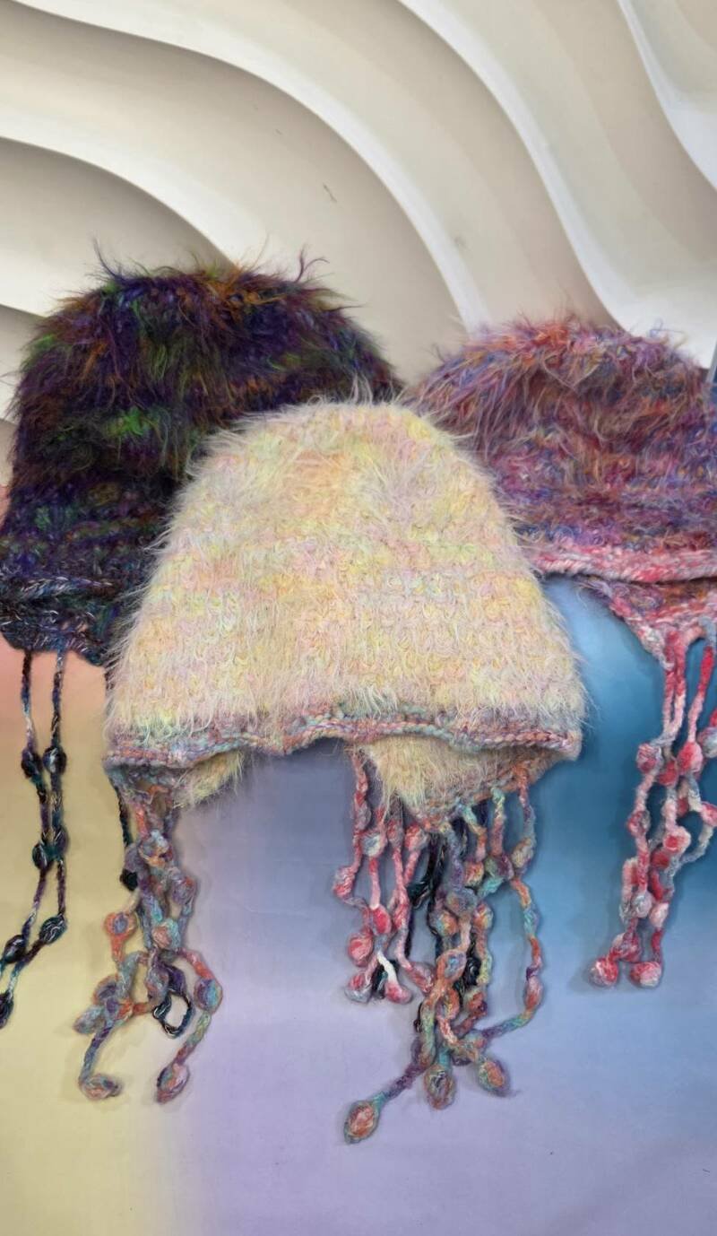 เติมความคิ้วท์ให้ลุคหน้าหนาวด้วยหมวกไหมพรมถักขนฟู ดีเทลสายยาวปอมๆ สไตล์เกาหลี ทรงสวย ดีไซน์เก๋ไม่ซ้ำใคร