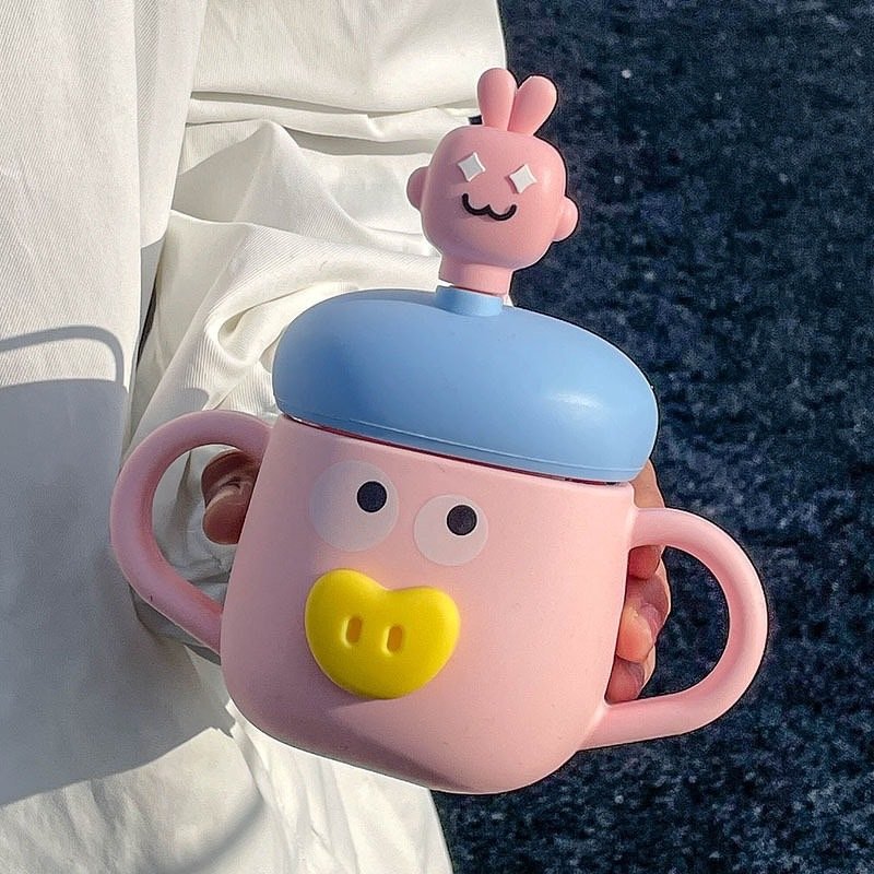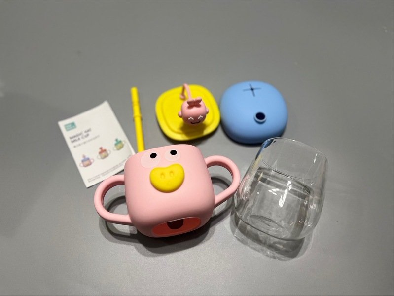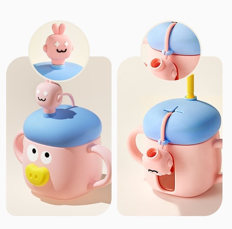 มีฝาปิดพร้อมหลอดซิลิโคน กันหก และมีที่ปิดเป็นหัวการ์ตูนน่ารัก ตัวปลอกซิลิโคนมีช่องด้านหลัง เปิดไว้ให้เห็นปริมาณน้ำด้านใน