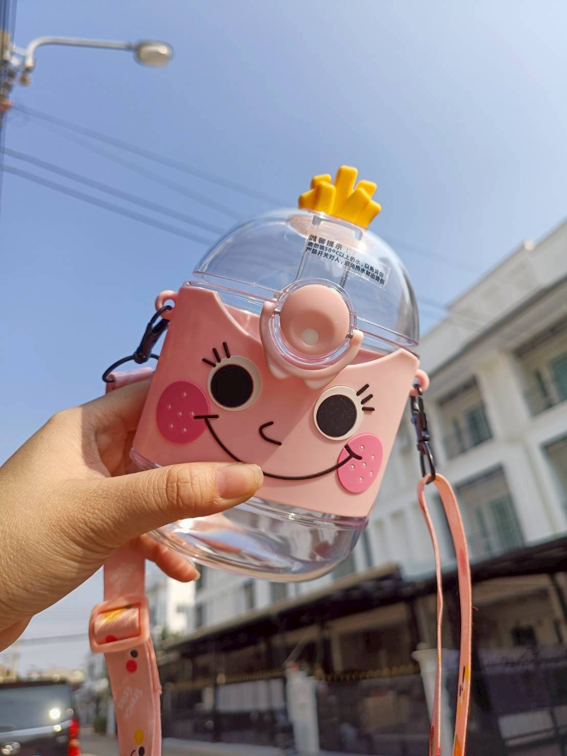 พร้อมส่งสีดำ ชมพู เป็นกระติกหลอดเด้ง มาพร้อมสายน่ารักๆ