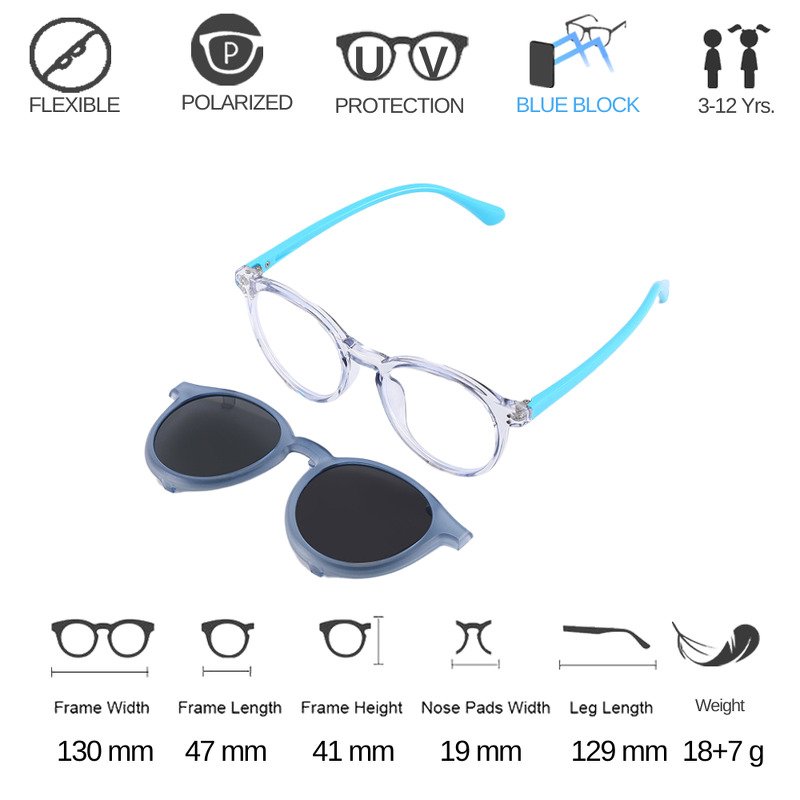 แว่นกันแสงสีฟ้าเด็กแบบมีคลิปกันแดด