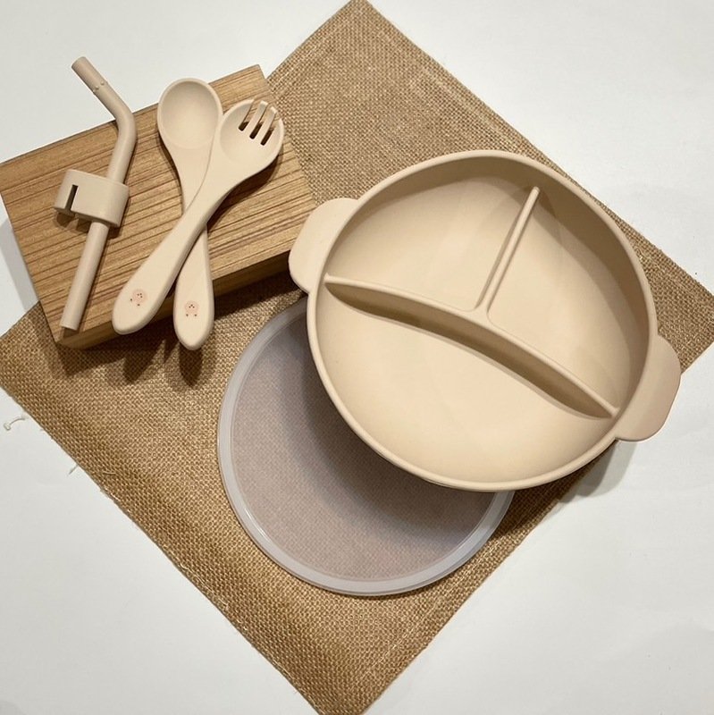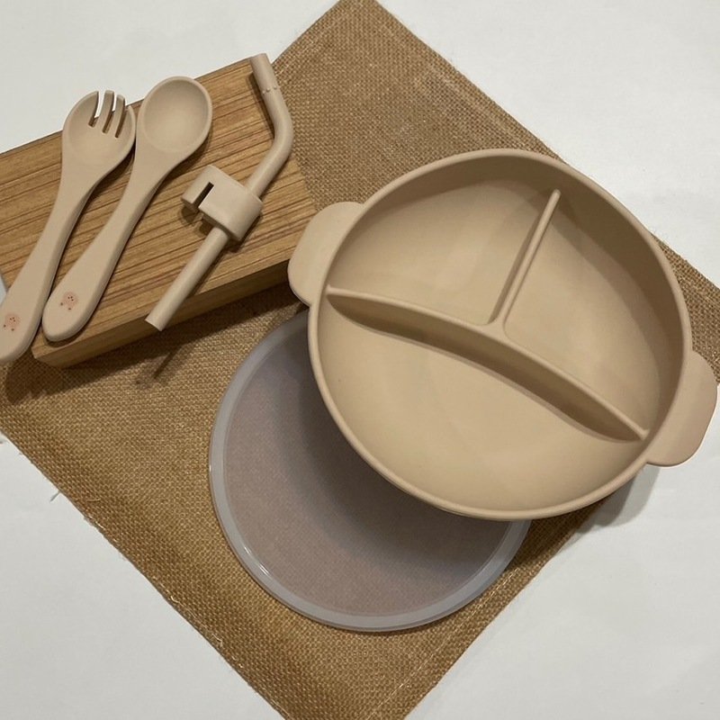 ชามซิลิโคนก้นดูด minimal สไตล์เกาหลี รุ่นใหม่มาพร้อมช่องแบ่ง 3 ช่องและ หลอดดูดซุบถอดได้ มาพร้อมฝาปิด แถมช้อนส้อม 1 คู่ฟรี