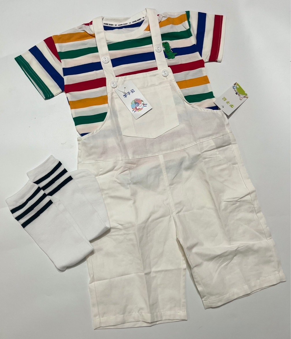 Rainbow jumsuit ชุดเซ็ตเอี๊ยม + เสื้อแขนสั้นเรนโบว์ + ถุงเท้ายาว ใส่เป็น gang น่ารัก