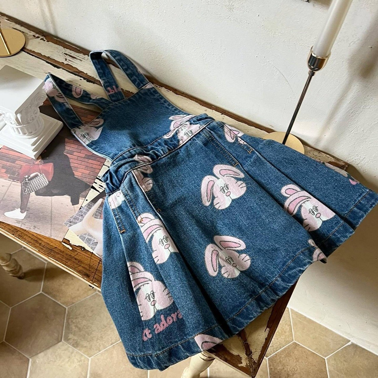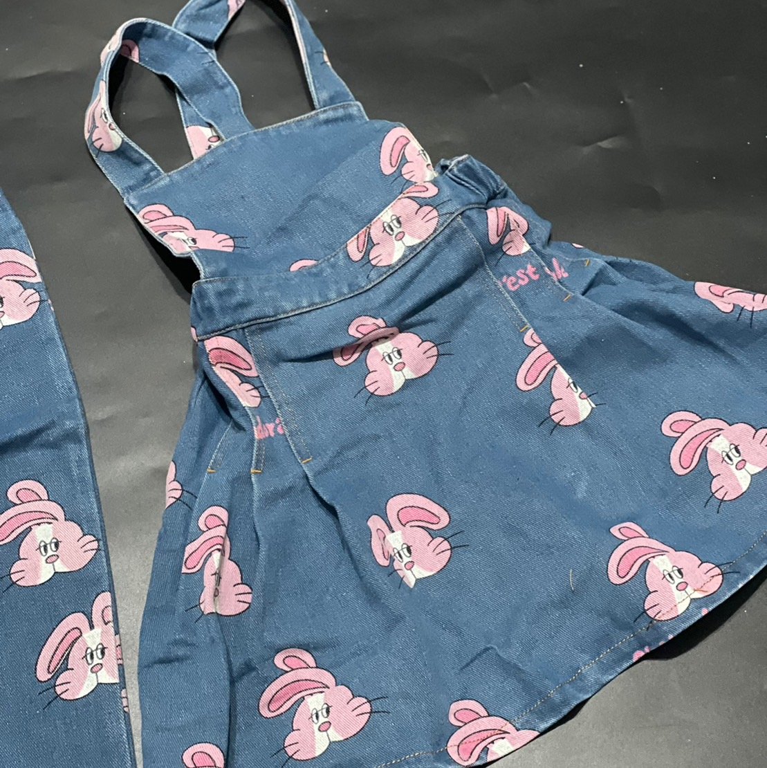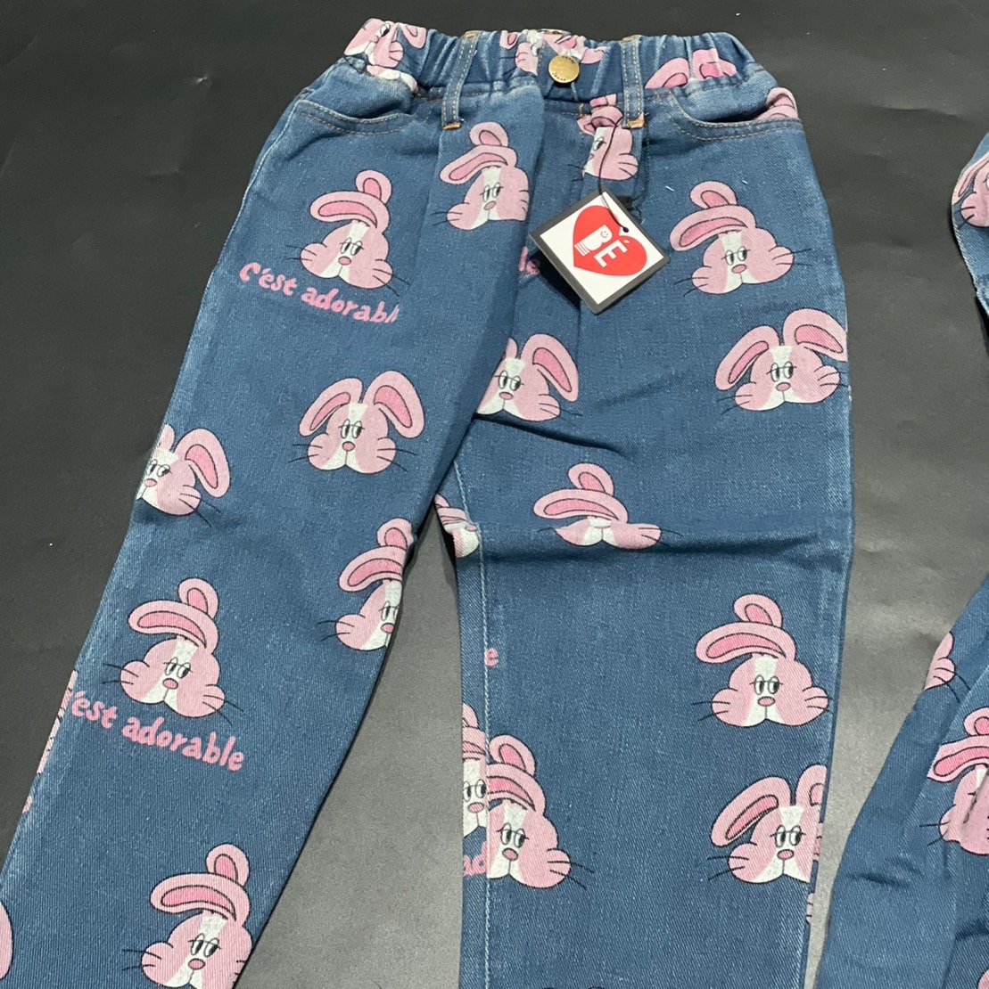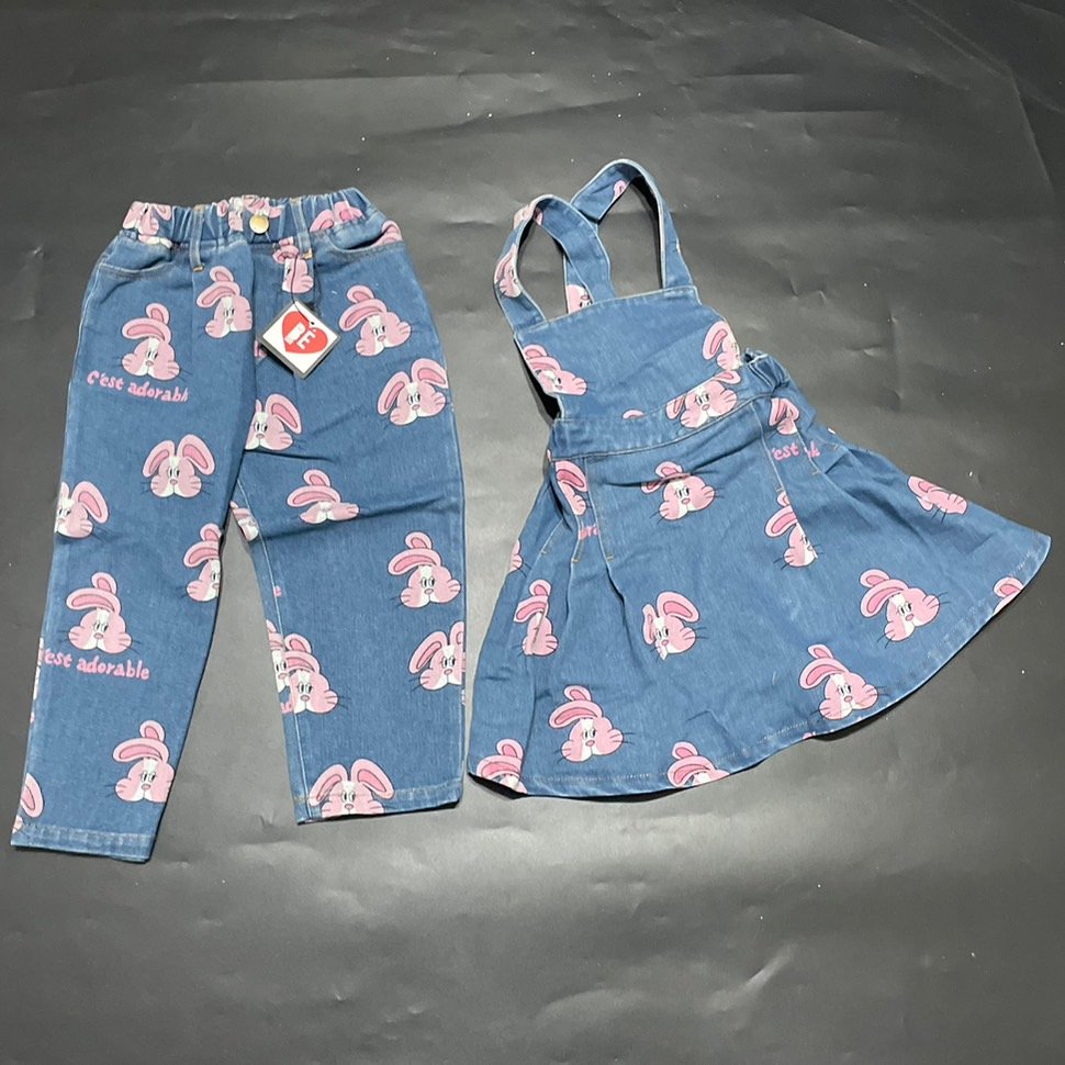 Bunny Jean ยีนส์พิมพ์ลายกระต่าย น่ารักมากๆ มีแบบกางเกงและแบบเอี๊ยมกระโปรง ไซส์ 100/120/140 cm