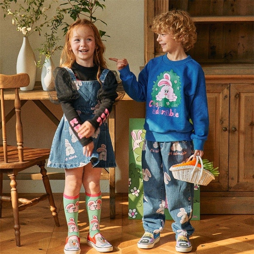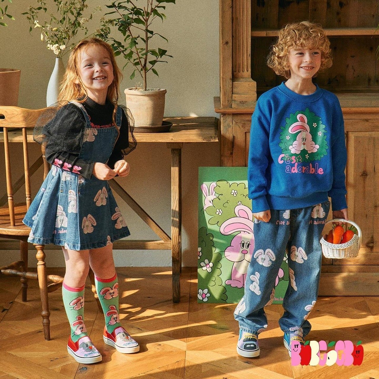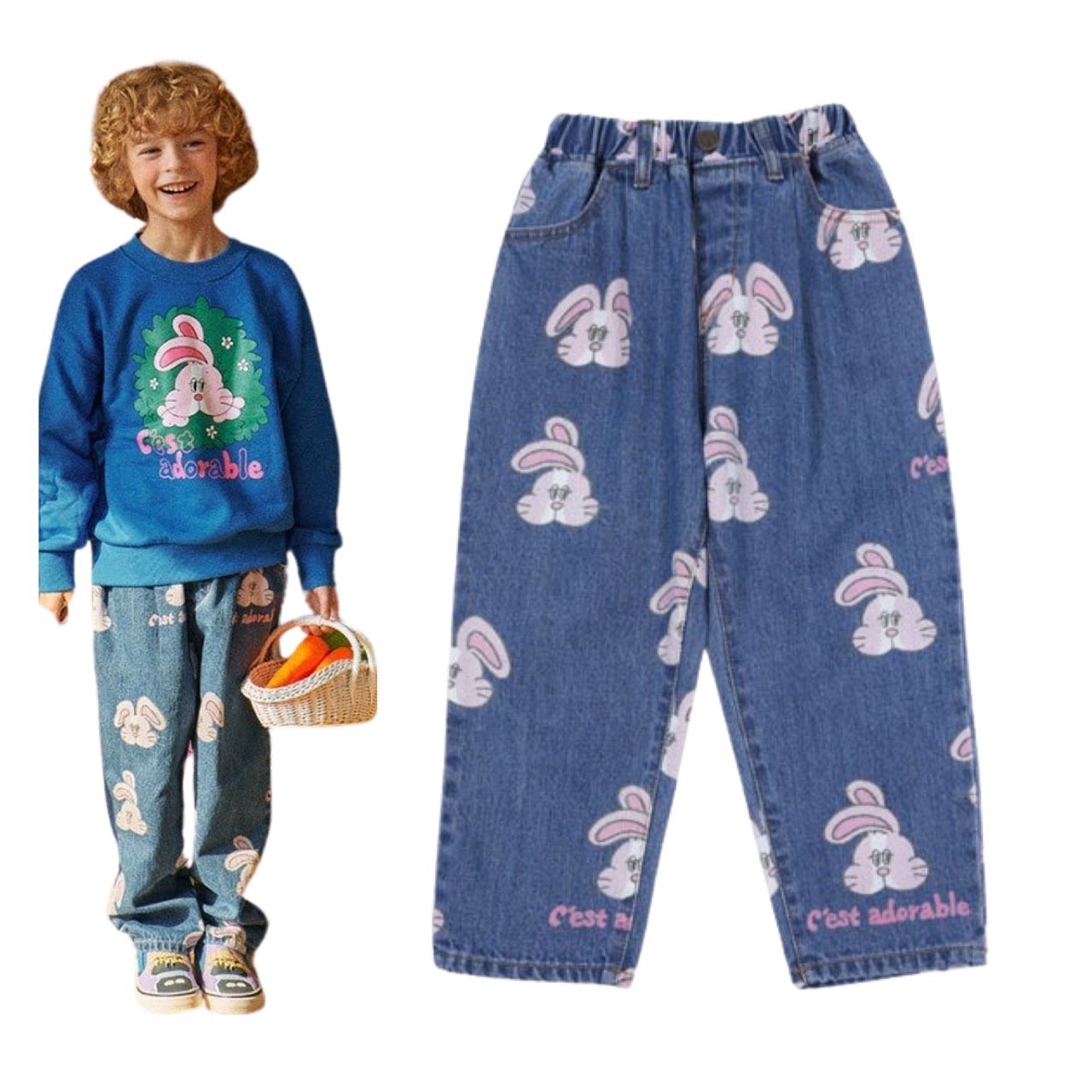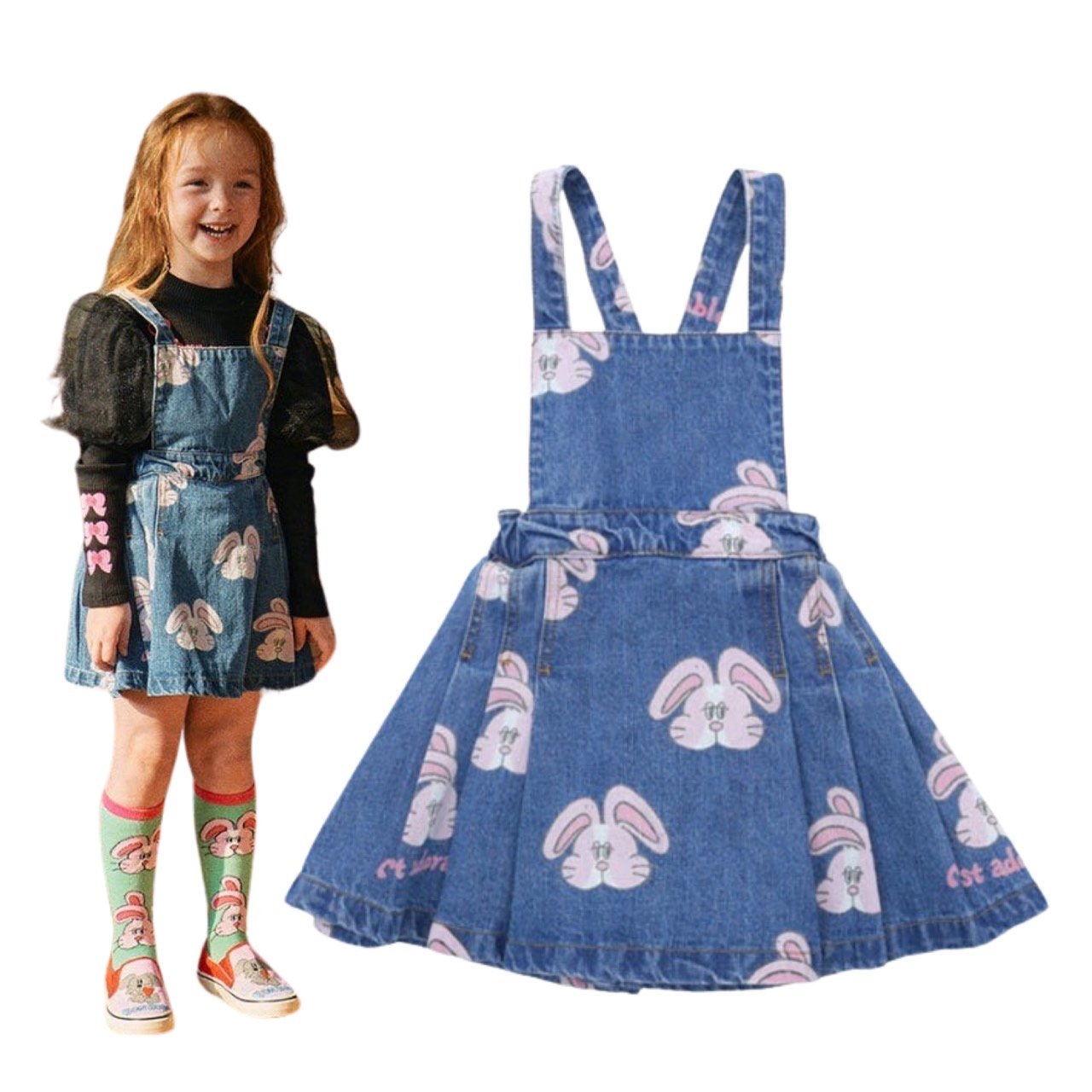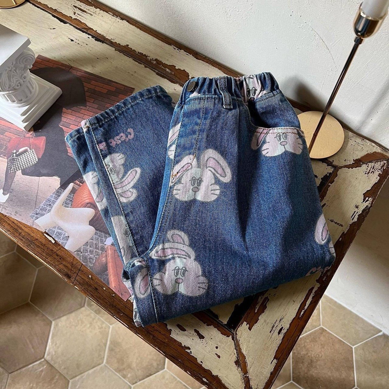 Bunny Jean ยีนส์พิมพ์ลายกระต่าย น่ารักมากๆ มีแบบกางเกงและแบบเอี๊ยมกระโปรง ไซส์ 100/120/140 cm