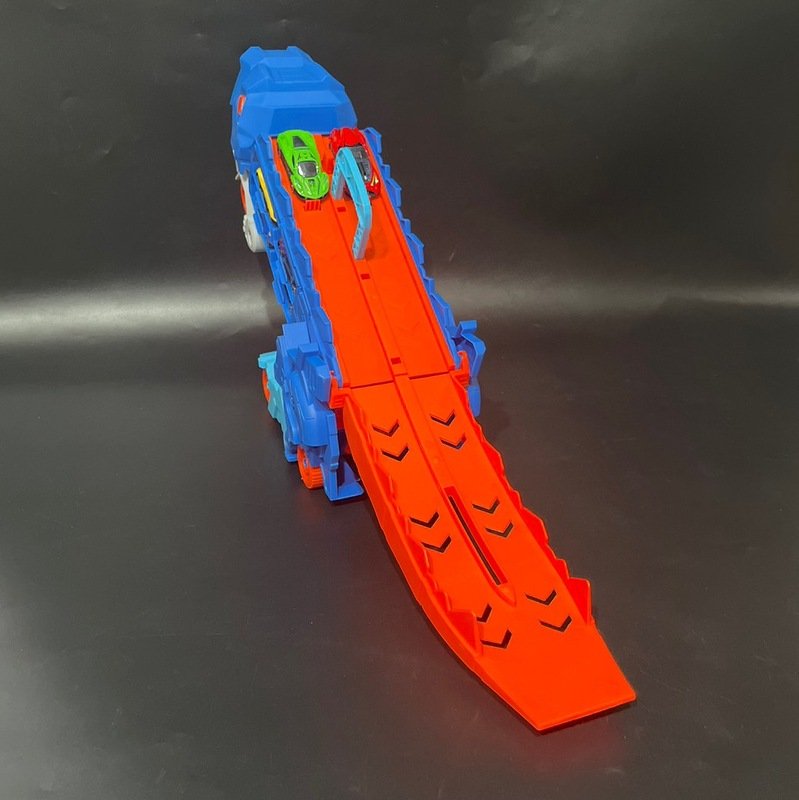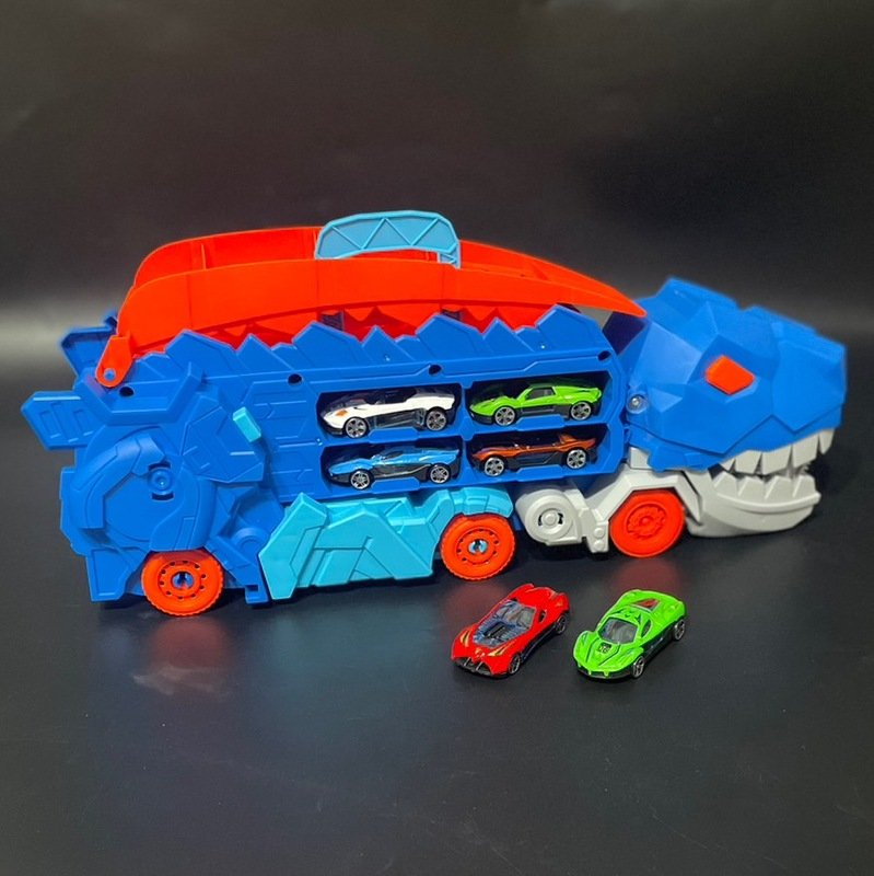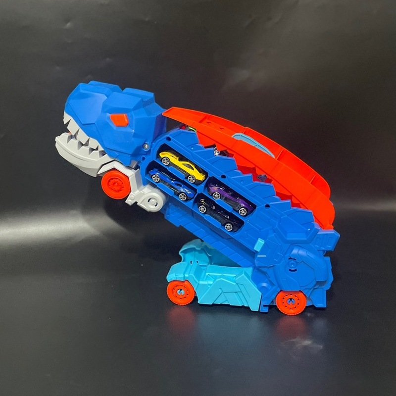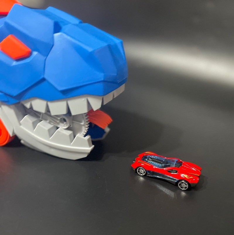 ของเล่นแนะนำของปีเลยค่ะ พอแกะออกมาจะมาเป็นหูหิ้วเป็นเหมือนที่สะสมเก็บรถได้มากที่สุดถึง 18 คัน แต่! พอกางฝาข้างบนออกก็จะกลายเป็นหางยาว และพอยกตัวขึ้นก็จะกลายเป็นทีเร็กซ์ตัวใหญ่ กลางหลังก็จะใช้เป็นรางรถ สามารถใส่รถรอด้านบนแล้วกดปุ่มปล่อยรถแข่งกันได้เลย!! แล้วตรงปากสามารถอ้าเขมือบรถได้ด้วย!!! ถ้าลูกได้ต้องถูกใจแน่นอน
