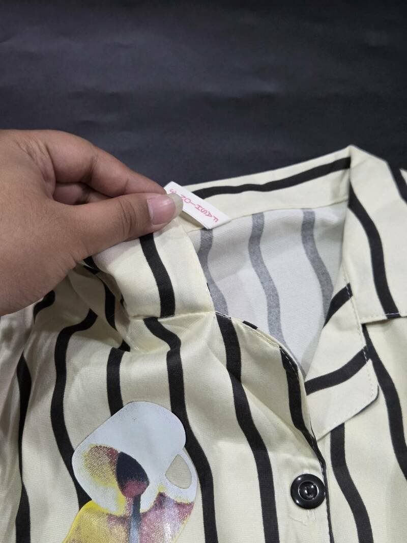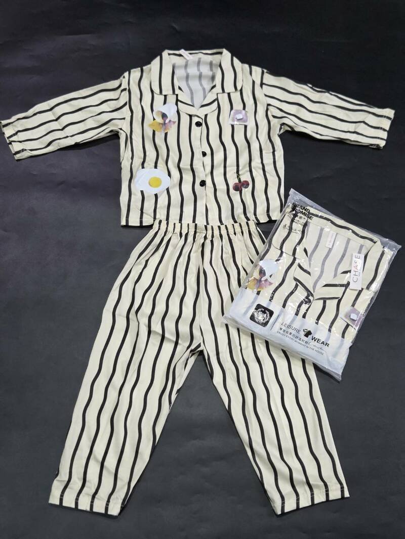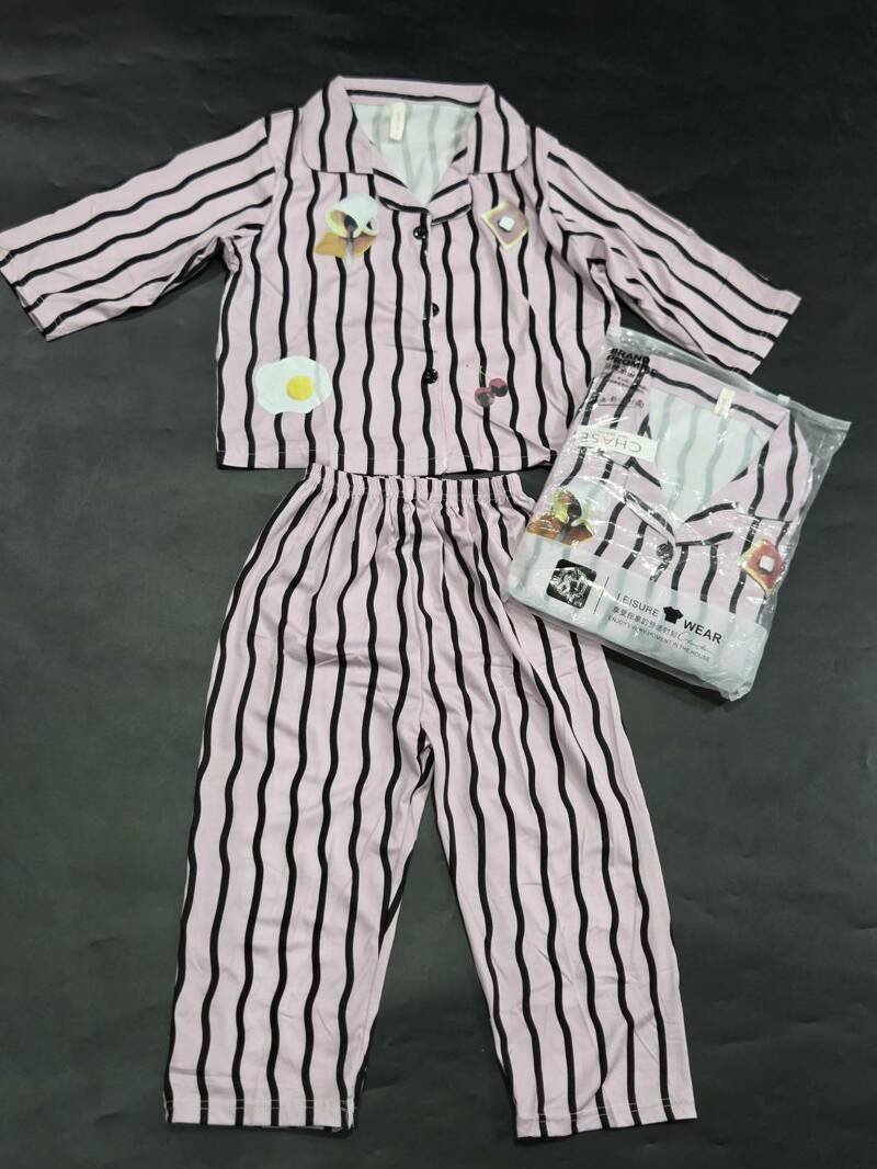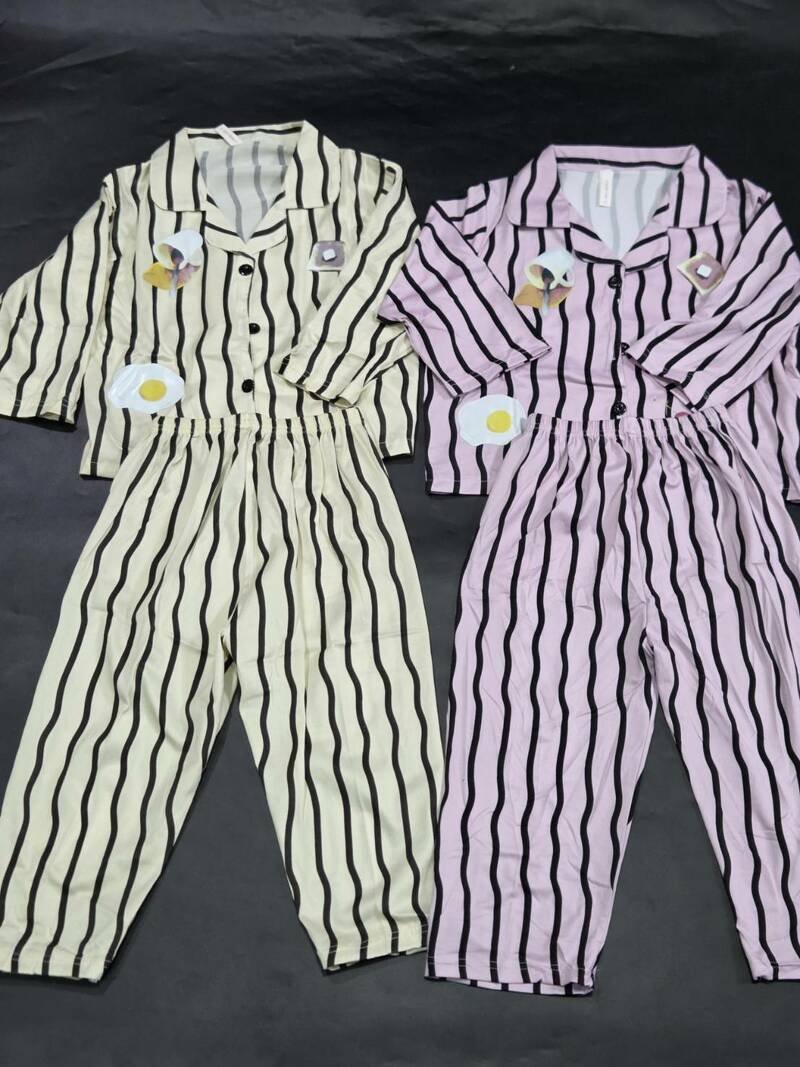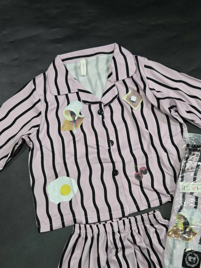 ชุดนอนแขนยาวขายาวกางเกงเอวยางยืด เสื้อคอปก มีกระดุมให้ติด ผ้าลายทาง มีสกรีนด้านหน้าเป็นลายอาหารเช้า ขนมปัง กาแฟ ไข่ดาว เชอร์รี่ น่ารักมากๆ เนื้อผ้ามีความเบาและนุ่ม เบาสบายใส่นอนได้ไม่อึดอัดไม่ร้อนไม่คัน ต้องมีติดตู้ไว้ ใส่สบายมากเลยค่ะ