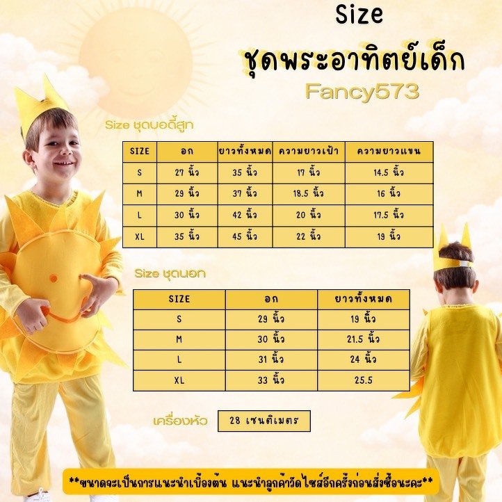 เติมความสดใสให้ตัวเล็กด้วยชุดพระอาทิตย์สีเหลืองทอง มาพร้อมรอยยิ้มหวานๆ ที่ใครเห็นก็ต้องเอ็นดู จะงานโรงเรียน งานแสดงนิทาน หรือปาร์ตี้