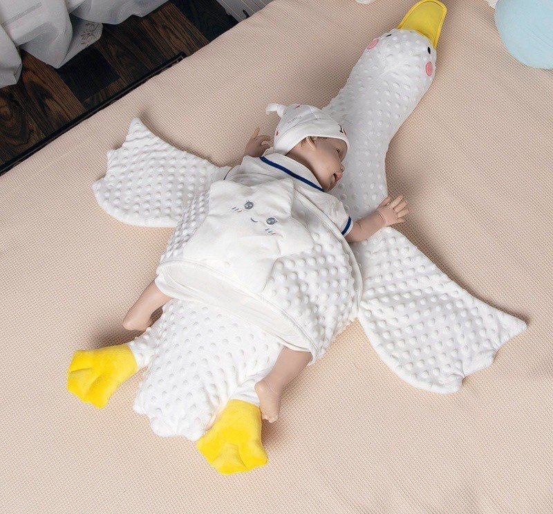 ตัวนี้เหมือนเป็นทั้งหมอน ที่นอน ตุ๊กตากันสะดุ้ง มีฟังก์ชั่นการใช้งานที่หลากหลาย ใช้เป็นที่นอนให้น้องนอนคว่ำทับให้ความรู้สึกเหมือนนอนบนอกแม่ หรือจะใช้ปีกกางออกไปวางบนตัวขณะหลับให้ไม่ผวาตื่น แม่ๆ จะใช้หนุน ให้กอดด้วยบนเตียงก็ได้