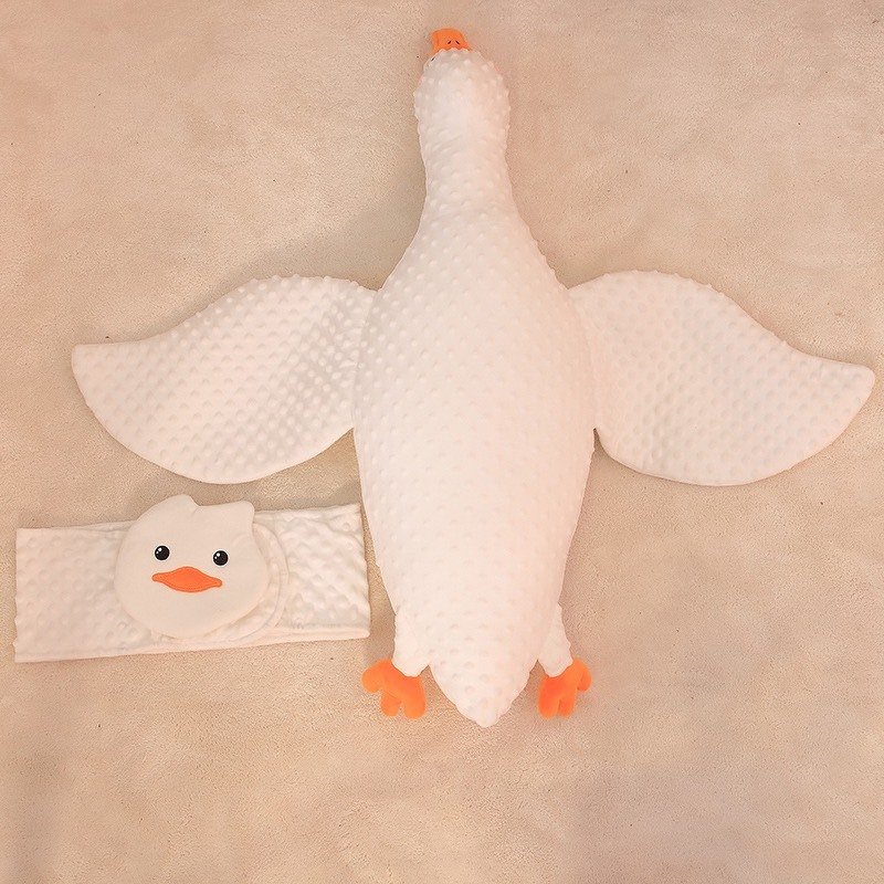 ตุ๊กตาน้องเป็ดที่ทำจากผ้า minky dot ที่มีคุณสมบัติช่วยลดการสะดุ้ง ทำให้ลูกของคุณนอนหลับยาวตลอดคืน