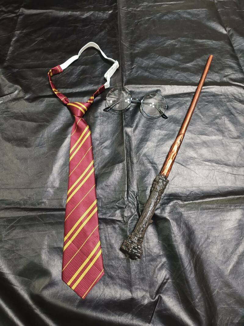 ภายในเซ็ตประกอบด้วย ไม้กายสิทธิ์, แว่นตาเอกลักษณ์ของแฮรี่, และ เนคไทสีประจำบ้านกริฟฟินดอร์ ทุกชิ้นทำ ดีเทลสวยสมจริง ใส่แล้วเหมือนได้เข้าเรียนที่ฮอกวอตส์จริงๆ