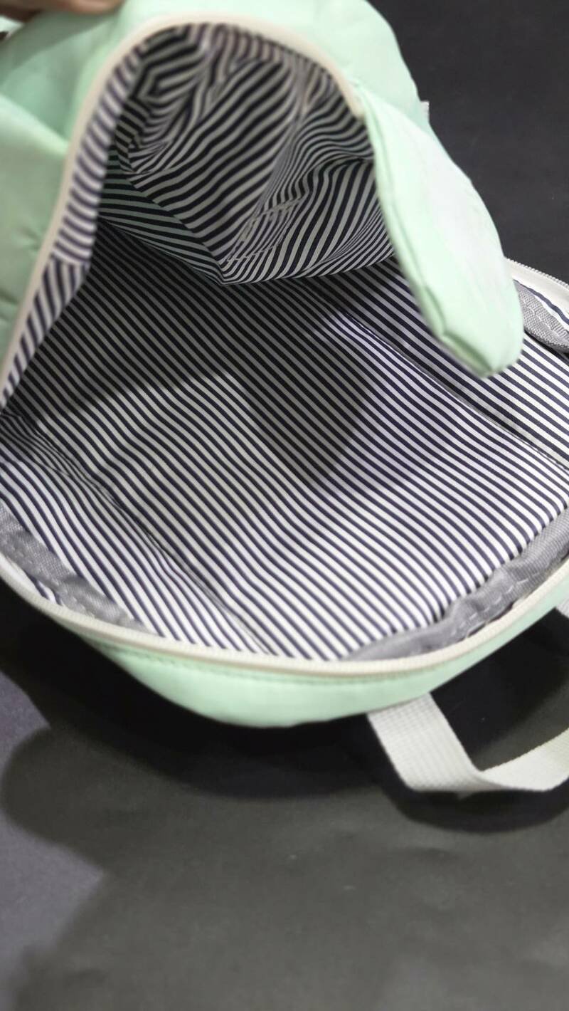 ปลอดภัยมีสายรัด อกพร้อมตัวล็อก และช่องใส่แผ่นรองไหล่ (ไม่เจ็บไหล่ไม่แดง)ช่องกว้างซิปเปิดง่าย ซับด้านในกระเป๋าลายทางพร้อมสายสะพายปรับระดับได้และยังเรืองแสงได้ด้วยเมื่อโดนแฟลช ปลอดภัยหายห่วง